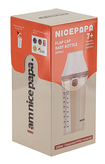 Бутылочка для кормления Nice Papa с широким горлом/антиколики 240 мл 7м+ PPSU Brown/коричневый