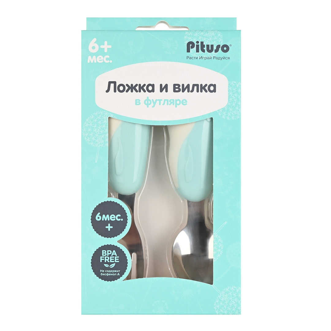 Ложка + вилка Pituso в футляре Blue/Голубой