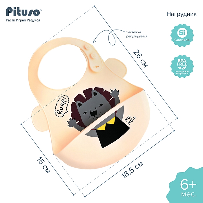 Нагрудник выполнен из безопасного силикона приятного на ощупь.