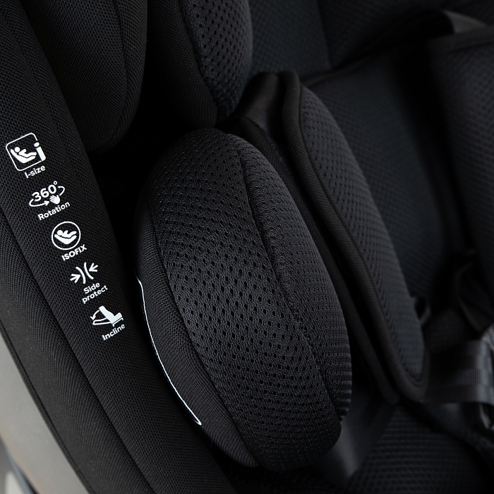• главная особенность автокресла в уникальной поворотной платформе, которую достаточно один раз надежно зафиксировать с помощью isofix и далее спокойно поворачивать на все 360 градусов. Таким образом, облегчается смена положения кресла - по ходу/против хода; значительно проще посадить/достать малыша, ведь кресло можно развернуть боком, а затем выставить либо по ходу, либо против хода движения. Регулировать поворот и угол наклона одной кнопкой стало очень удобно.