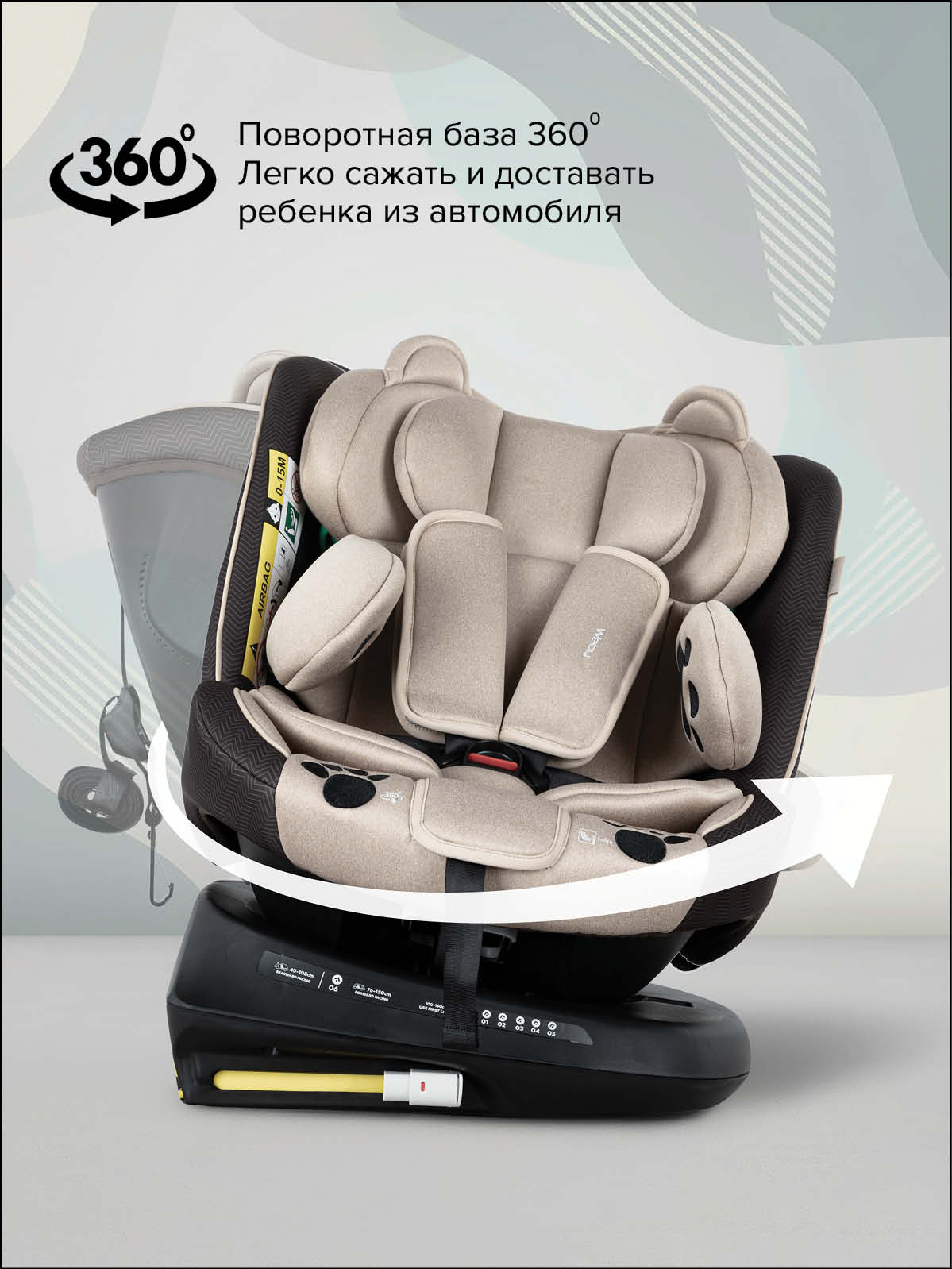 Установка против хода движения (обязательно до 15 месяцев, рекомендуется до 4 лет) для максимальной защиты шеи и позвоночника.