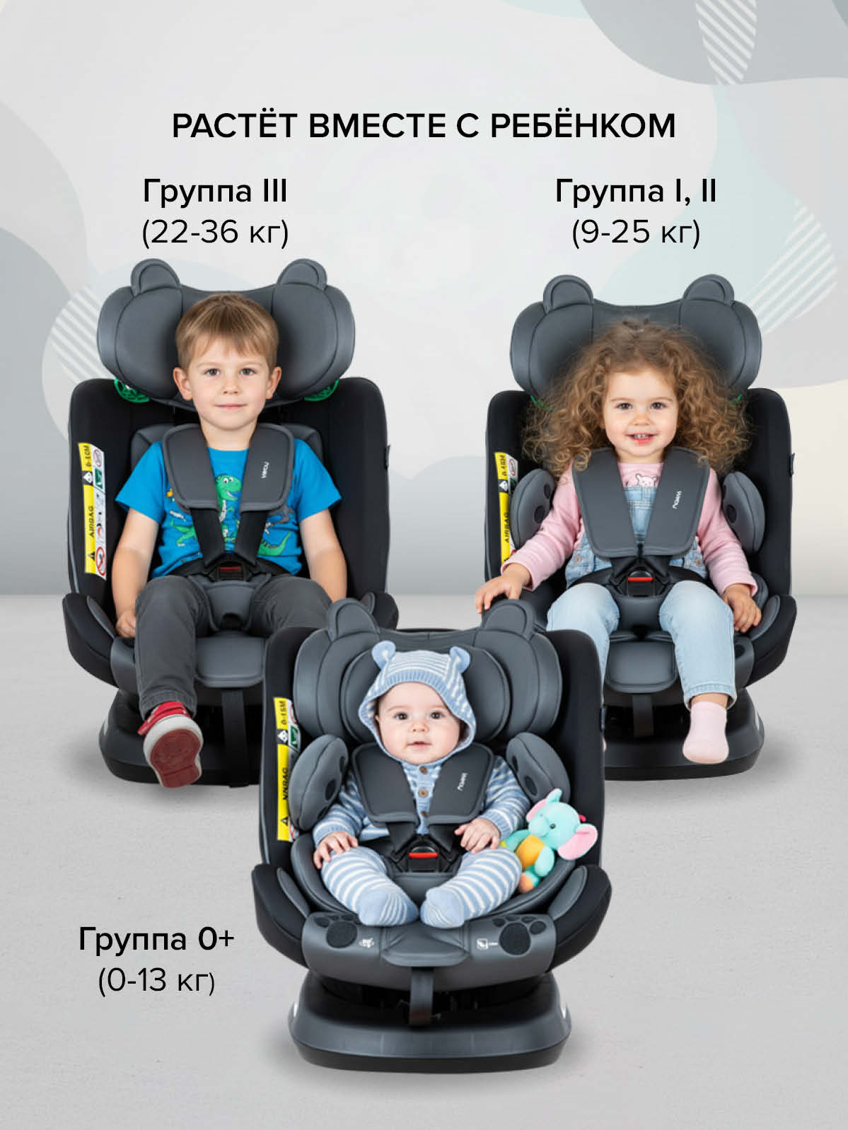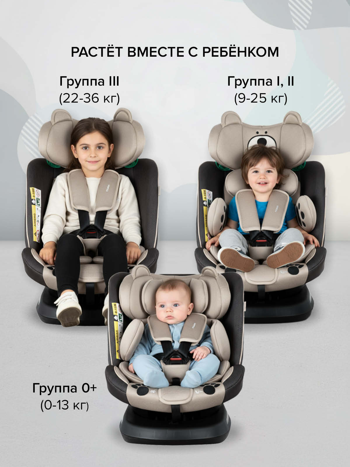 Главное преимущество: одно кресло на все детство — от рождения до 12 лет (примерно до 150 см). Растет вместе с вашим ребенком, адаптируясь под его размер.