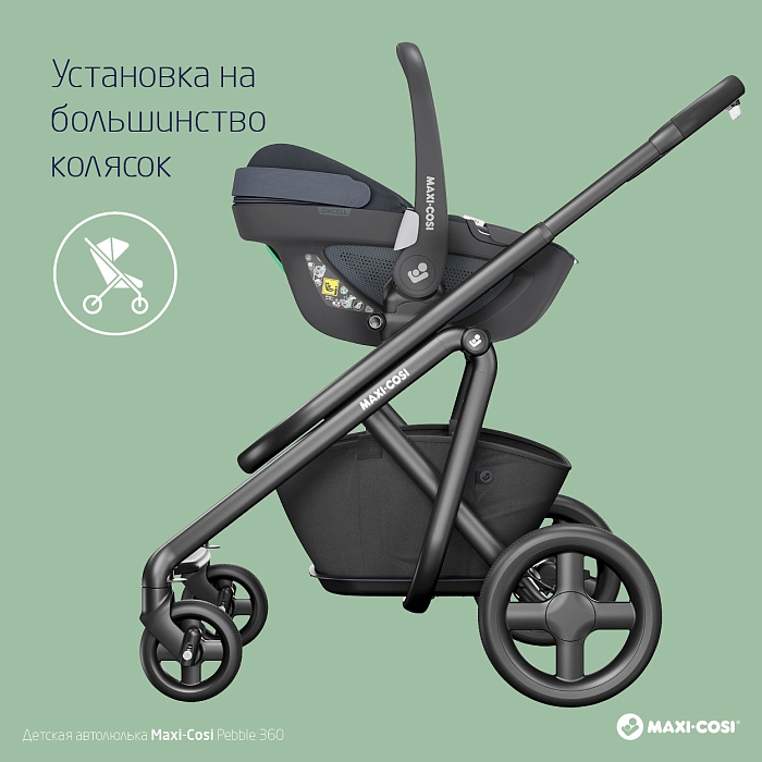 Легко устанавливается на шасси колясок Maxi-Cosi и Quinny при помощи специальных адаптеров