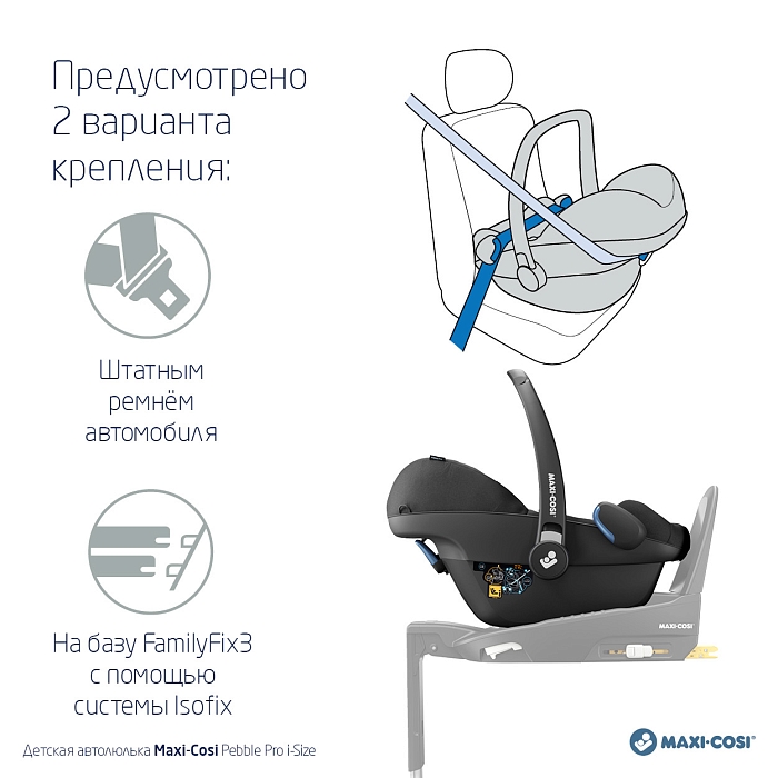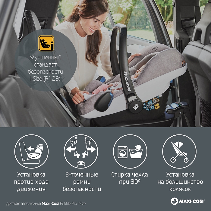 Pebble Pro i-Size — современное детское автокресло, которое обеспечивает лучшую безопасность малыша и соответствует новому стандарту i-Size (R129). Его легко использовать благодаря возможности использованию с базой Isofix.