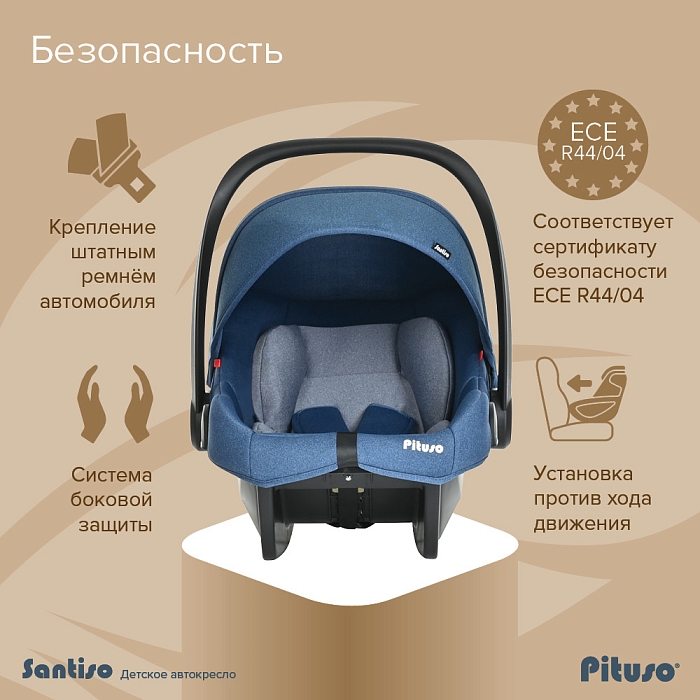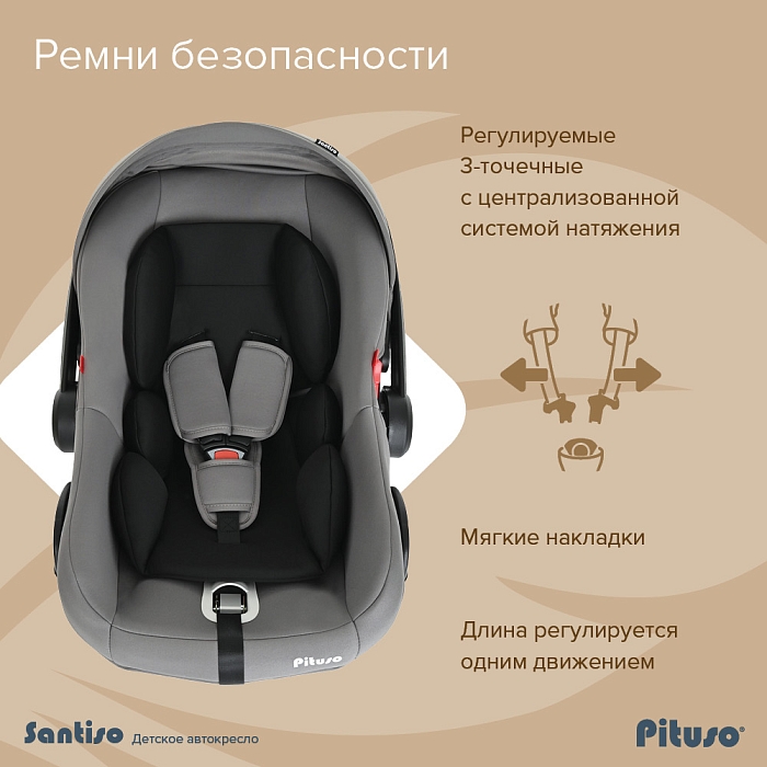 Детское комфортное автокресло Pituso Santiso с уютной глубокой чашей. Предназначено для пассажиров с рождения примерно до года.