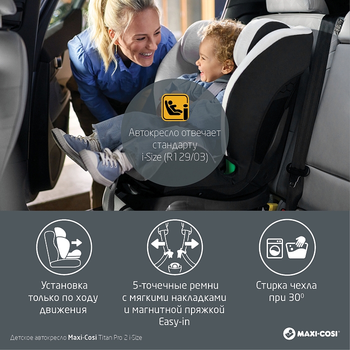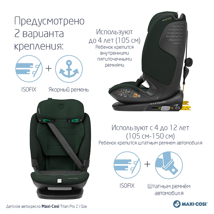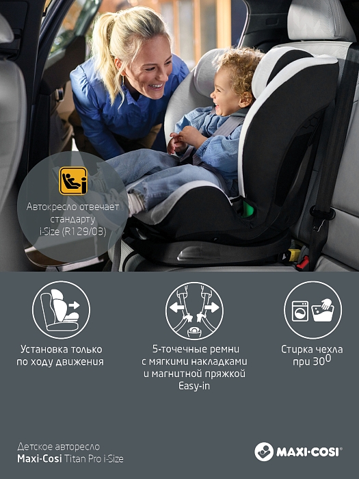 Одно автокресло, которое делает ежедневные семейные путешествия легкими - в течение многих лет - и растет вместе с вашим ребенком. Titan Pro i-Size: это автокресло группы 1-2-3 быстро и легко устанавливается в большинство автомобилей с помощью крепления ISOFIX и якорного ремня. Удобный 5-точечный ремень безопасности с магнитной пряжкой делает посадку и высадку из машины вашего ребенка простой и быстрой. А по мере того, как ваш ребенок растет, подголовник и ремни очень просто регулируются возр. Путешествуйте легко, день за днем. Год за годом.