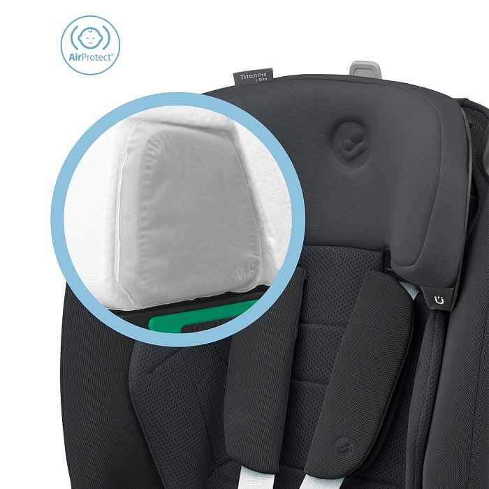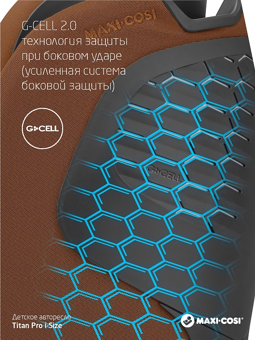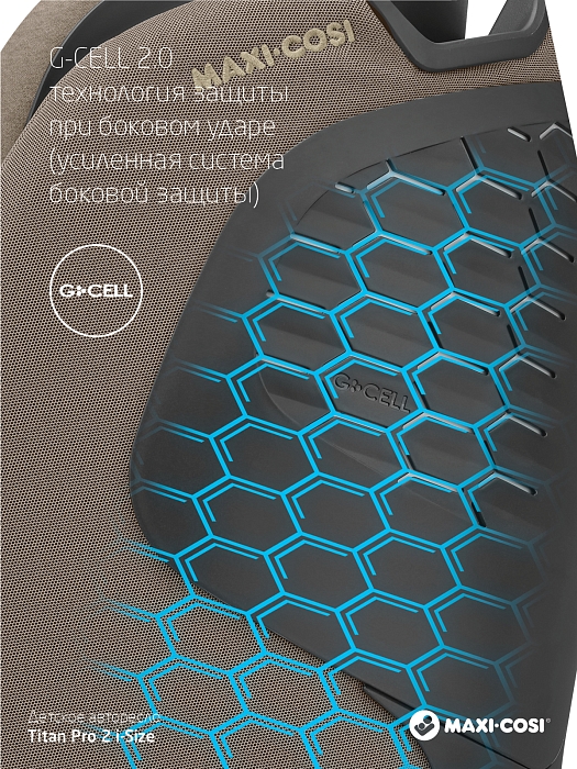 Titan Pro i-Size — лучший защитник. Это автокресло отвечает наивысшему стандарту безопасности i-Size. Поскольку 45 % ударов приходится на боковые стороны, Titan Pro i-Size оснащен запатентованными подушками безопасности AirProtect® в подголовнике, которые снижают риск травм головы до 20 % и повышают комфорт для вашего ребенка. Это универсальное автокресло оснащено защитой от бокового удара благодаря запатентованной технологии G-Cell 2.0; Гибкий, но прочный материал предназначен для распределения силы удара от вашего ребенка, чтобы уменьшить травму.