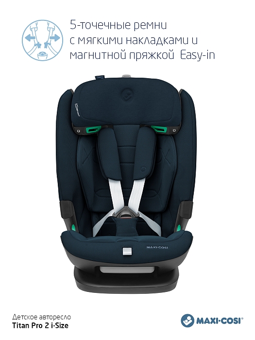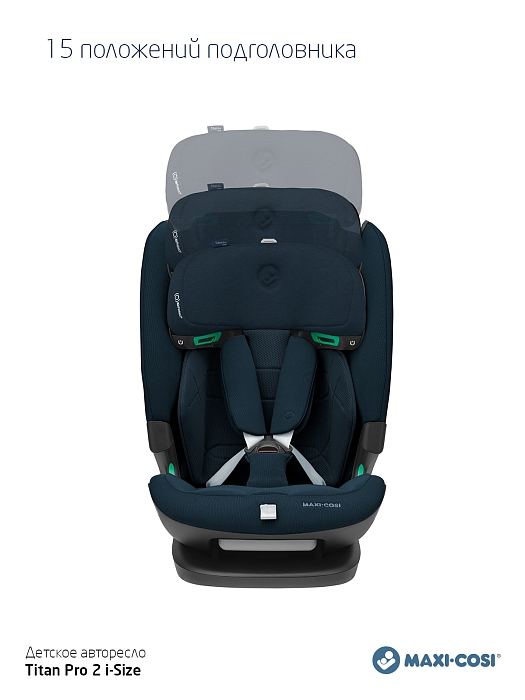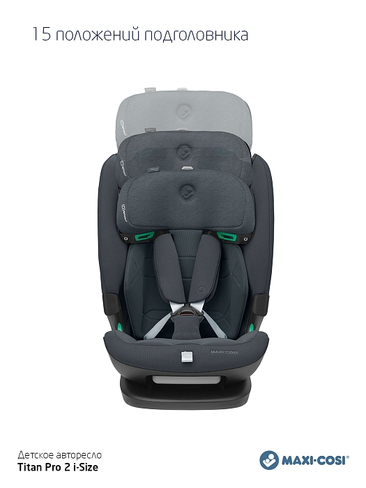 Автокресло Titan Pro i-Size растет вместе с вашим ребенком от 15 месяцев до 12 лет, от детского сада до школьной скамьи. Когда они совсем маленькие, вы можете использовать магнитные ремни easy-in, чтобы обеспечить их безопасность (5-точечные ремни можно использовать до 4 лет или 105 см). Как только ваш ребенок станет достаточно взрослым, чтобы пристегиваться ремнем безопасности автомобиля, 5-точечные ремни можно снять. Мягкий подголовник имеет 15 положений по выстое в то время как сиденье трансформируется в сиденье-бустер с высокой спинкой, чтобы обеспечить вашему малышу безопасность, надежность и комфорт во время путешествий.