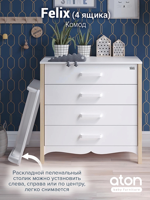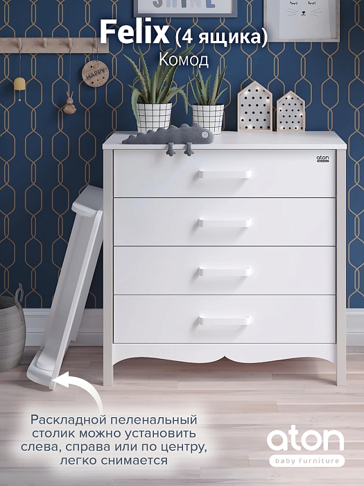 Раскладной пеленальный столик можно установить слева, справа или по центру, он легко снимается, не оставляя никаких следов на столешнице, получается обычный комод.