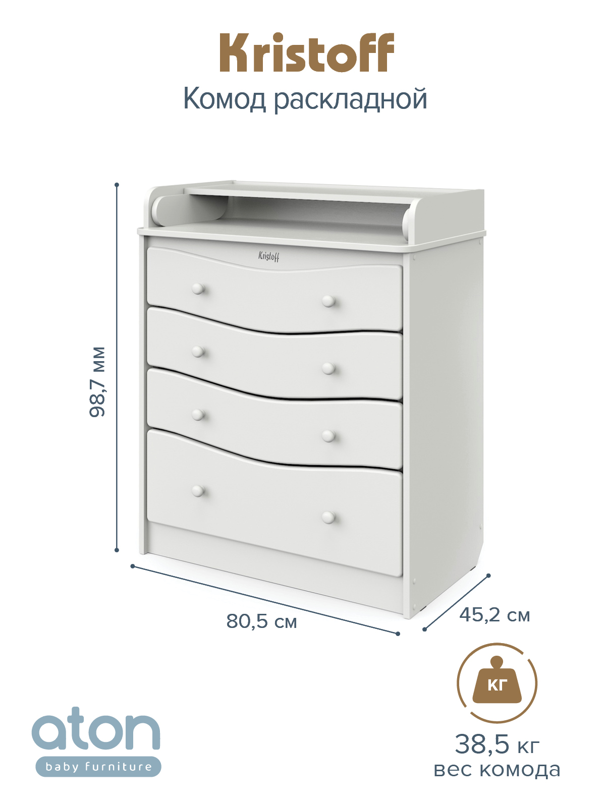 Детский раскладной комод Атон Сириус Kristoff ЛДСП Белый 4 ящ.