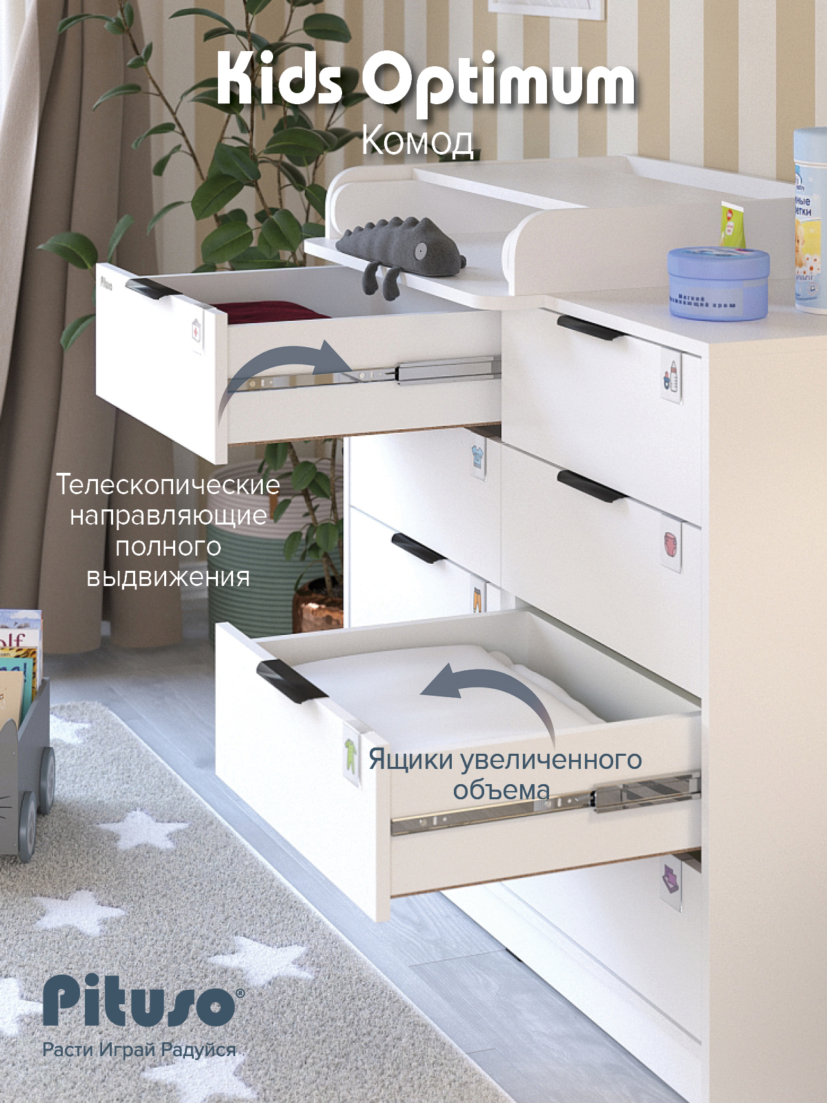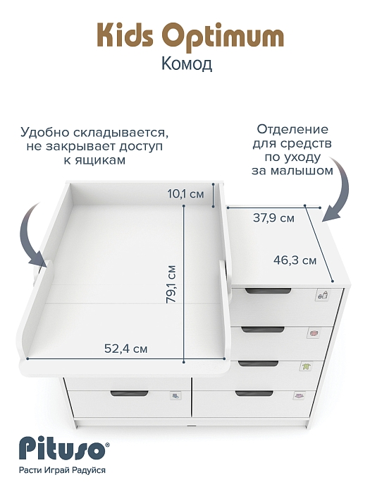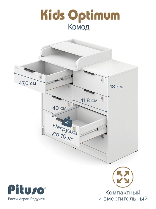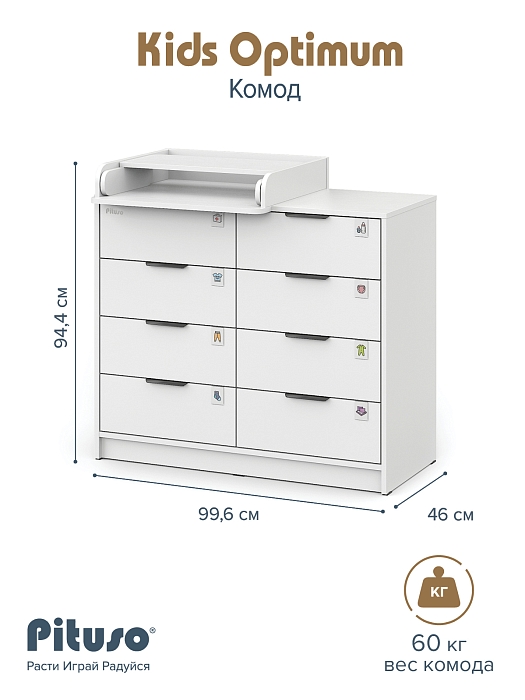 Комод Pituso Kids Optimum Белый-белый (2 места)