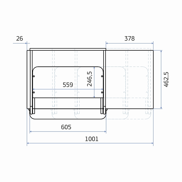 общие габариты: 106х52х26,5 см.