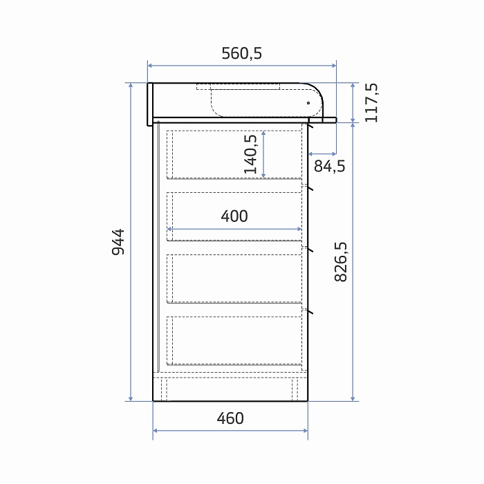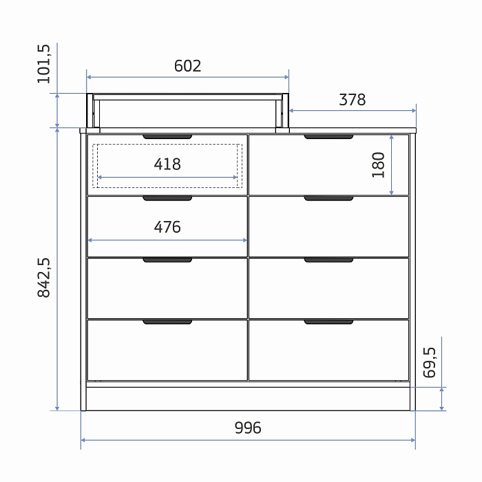Высота пеленальной поверхности (столешницы комода) - 84,3 см