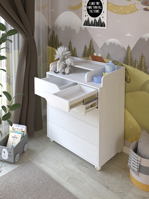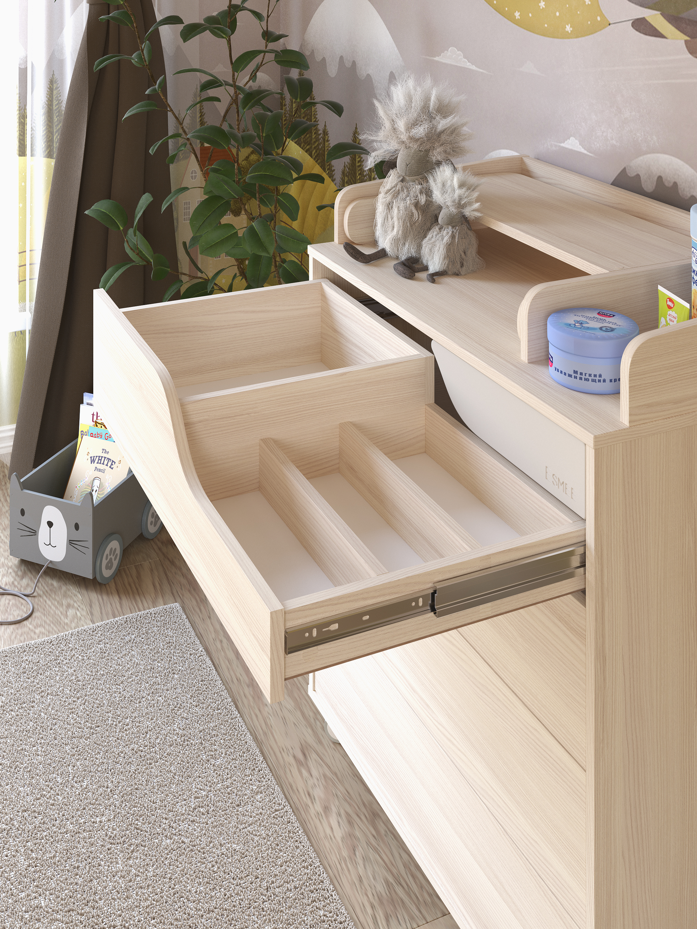 Размер пеленальной площади (Д*Ш): 67,2х52,4 см. Скругленные углы. Надежный скрытый механизм раскладывания. Всё необходимое под рукой.