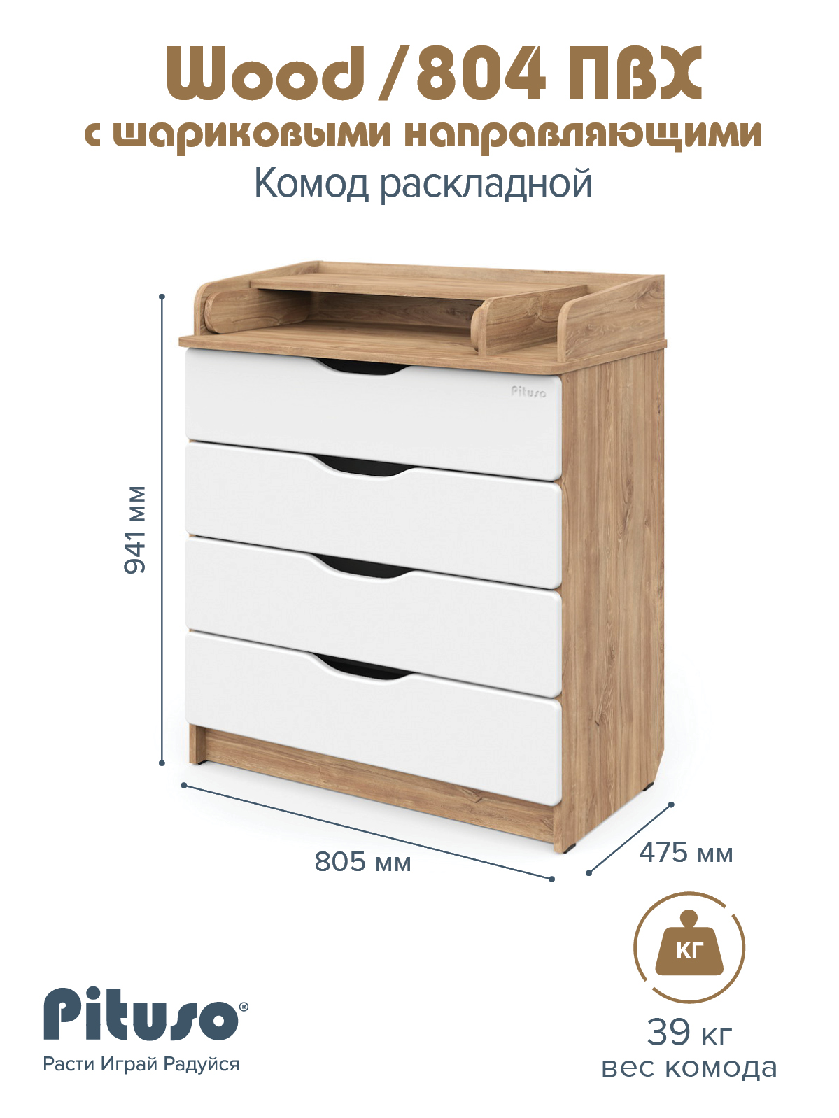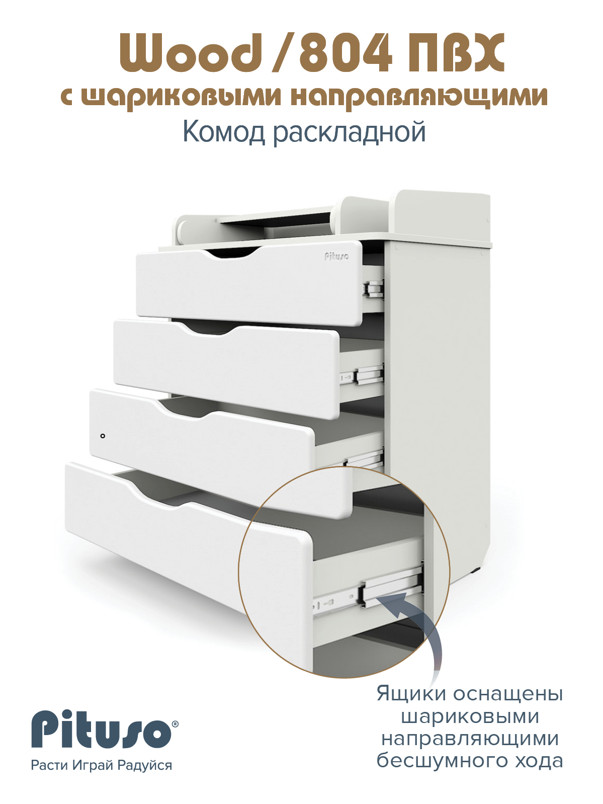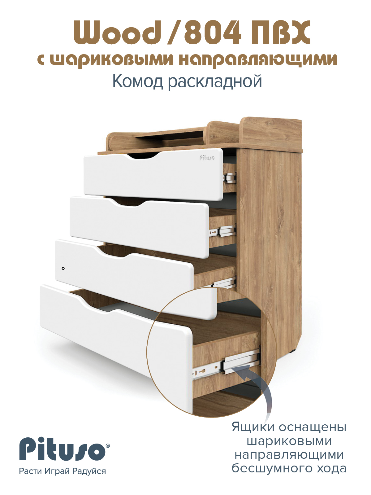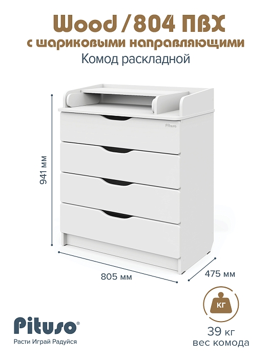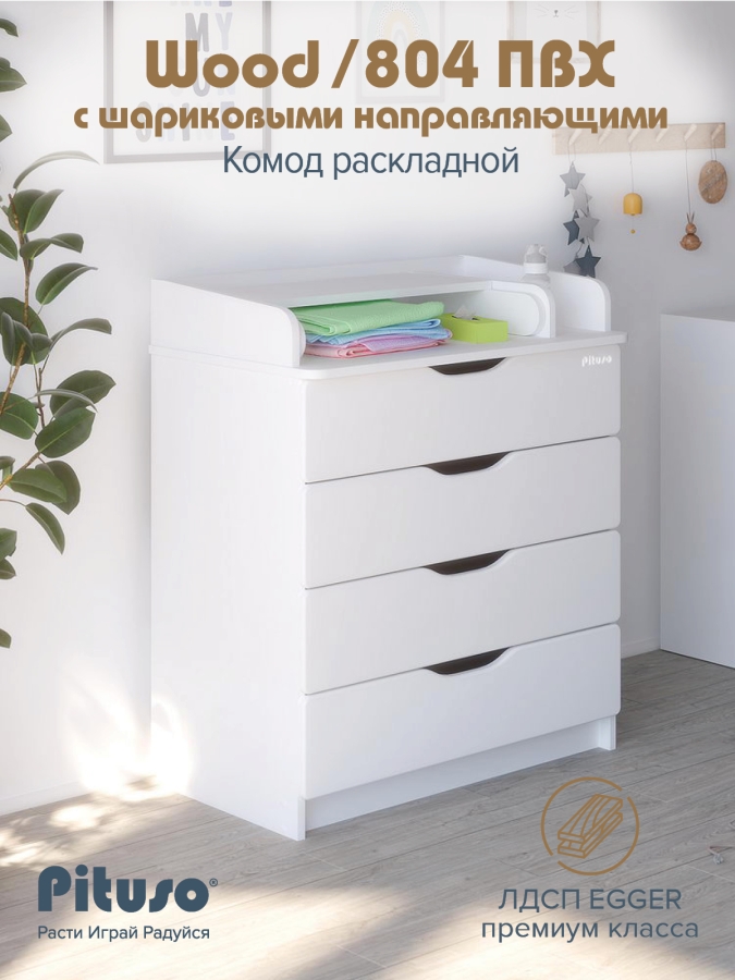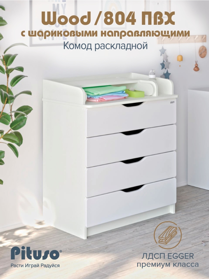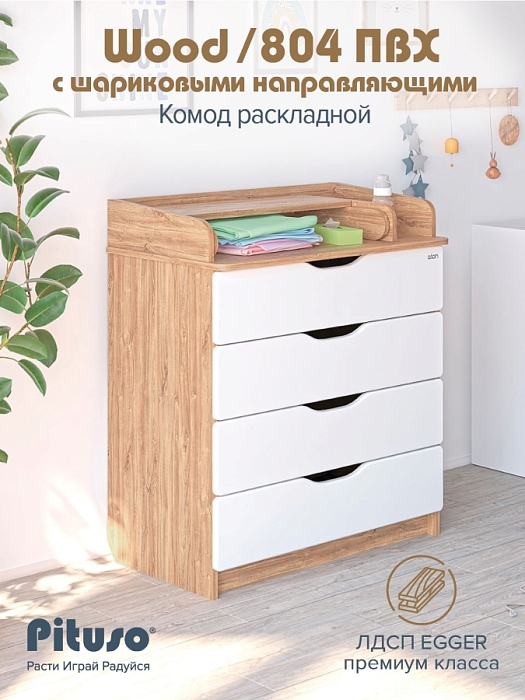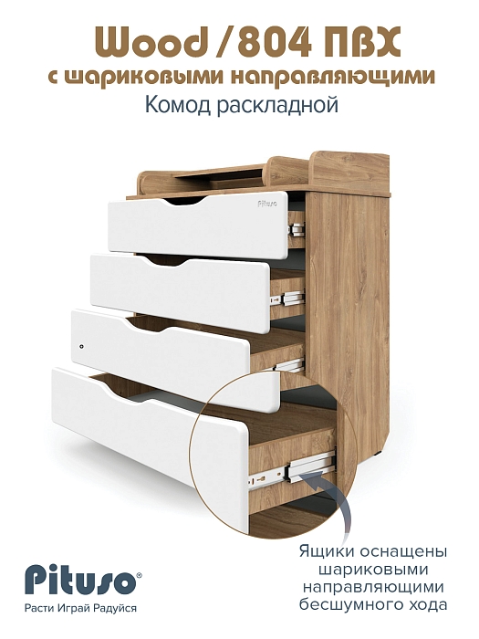 Комод раскладной Pituso Wood/ 804 ПВХ с шариковыми направляющими 4 ящика Ясень Тронхейм