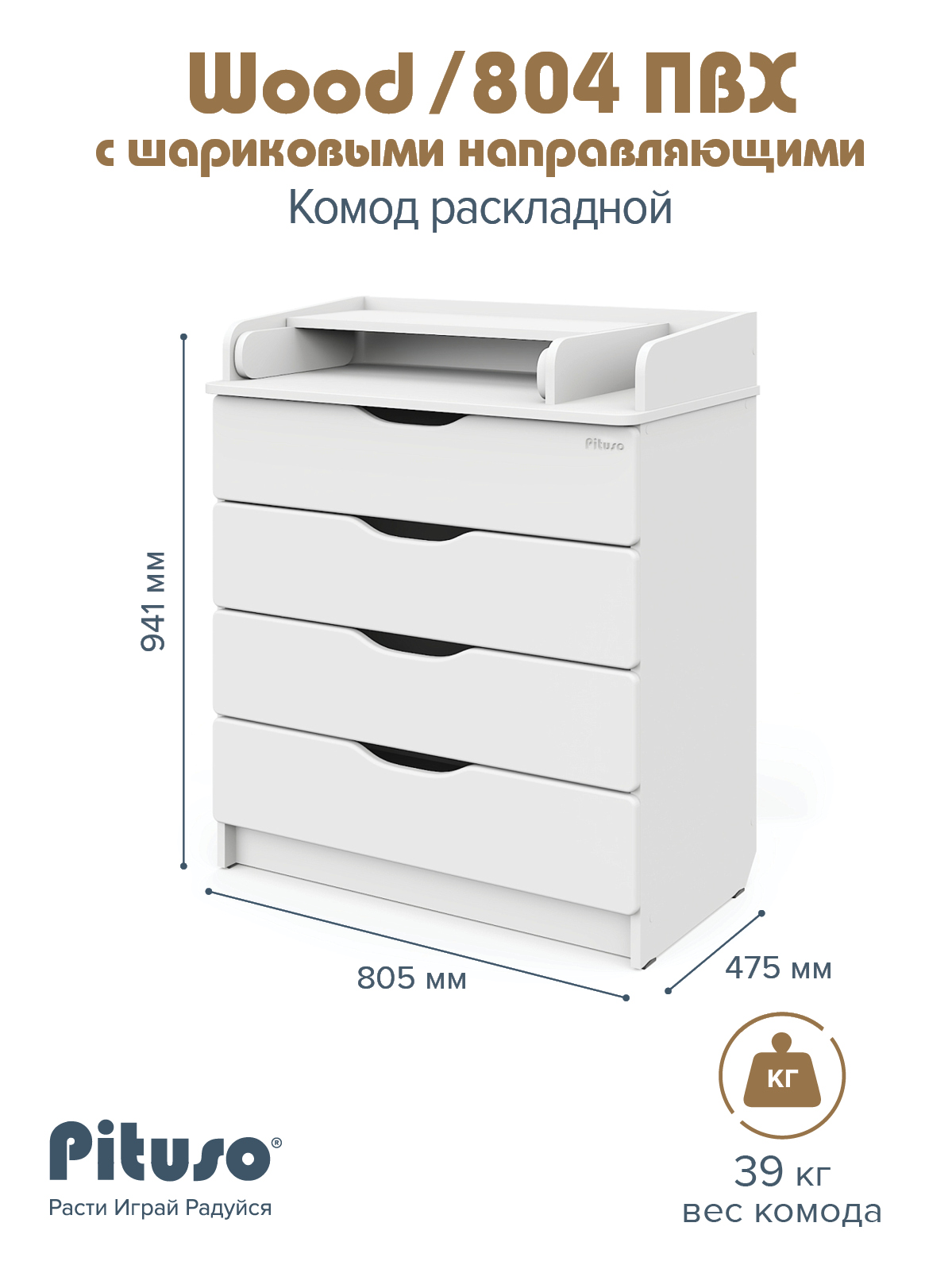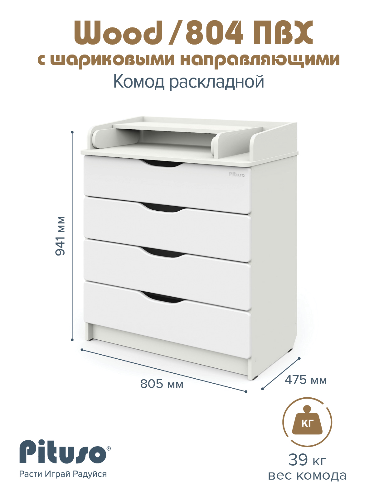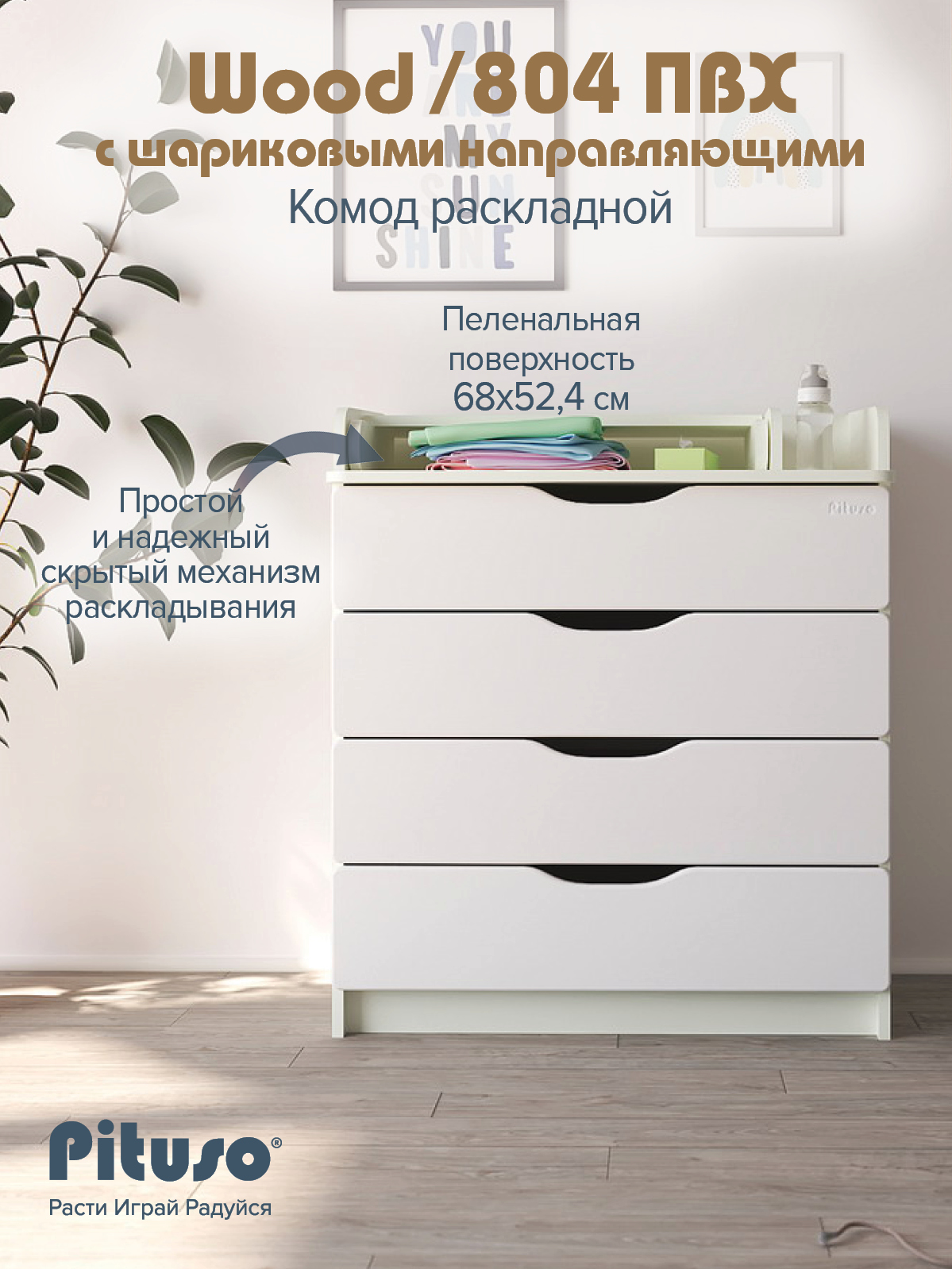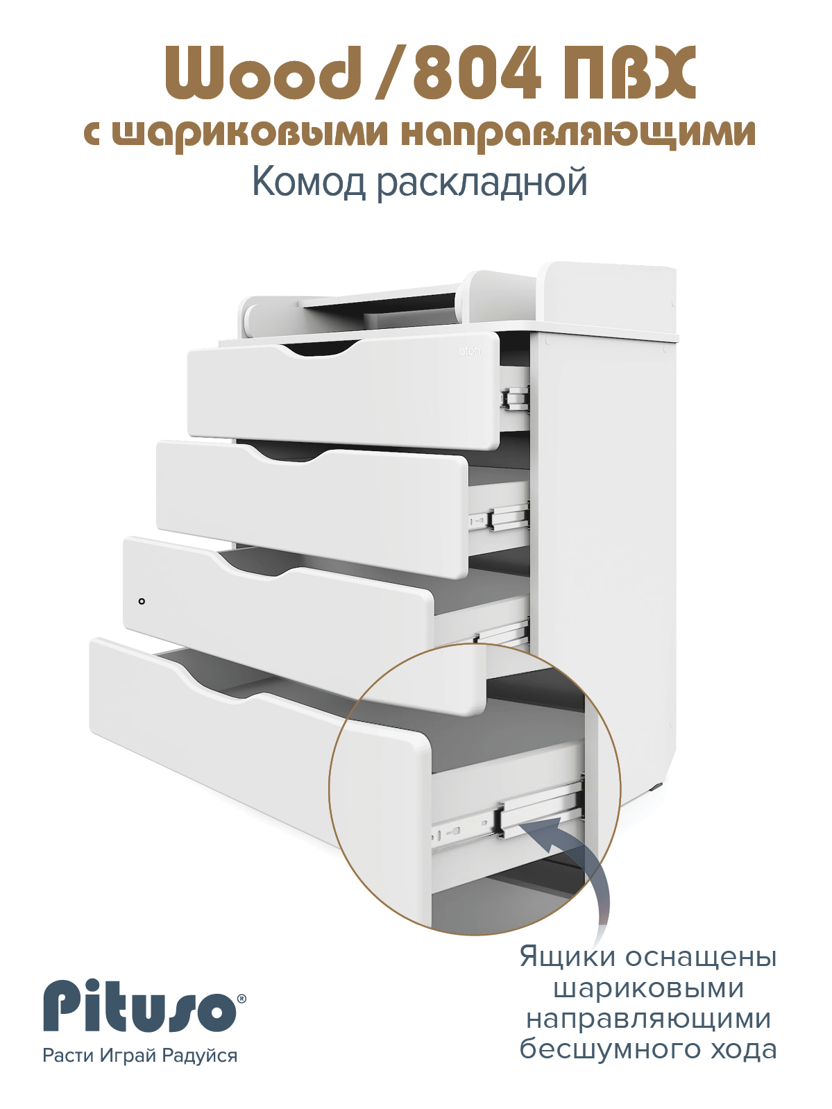 Комод раскладной Pituso Wood/ 804 ПВХ с шариковыми направляющими 4 ящика Ясень Тронхейм