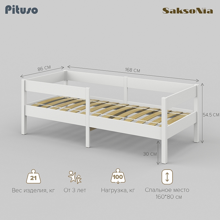 Кровать подростковая Pituso Saksonia 160х80 см Белый-белый