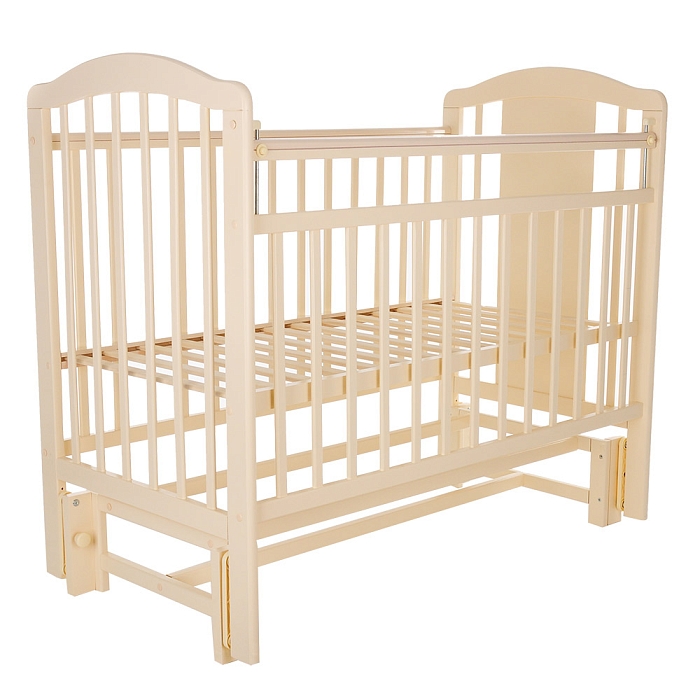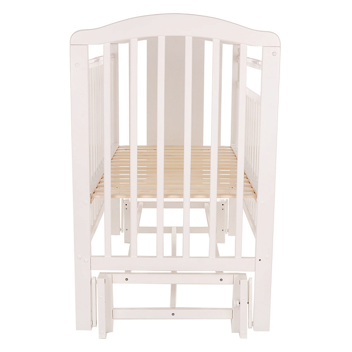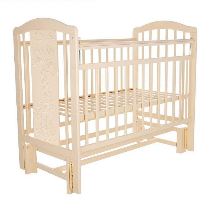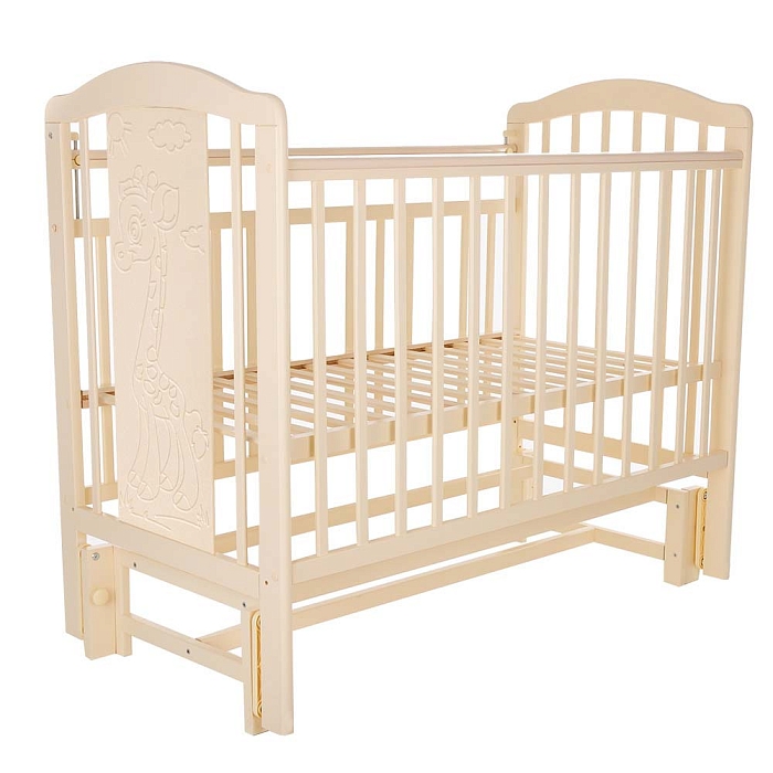 Элегантная, красивая и функциональная модель. Кроватку характеризует современный стиль (одна из спинок декорирована рисунком) и удобство в использовании. Маятник помогает укачивать новорожденного ребёнка в кроватке. На этапе сборки определяется в продольном или поперечном маятнике будет использована кровать.