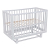 Стенки и дно кроватки – реечные, что создает естественную вентиляцию матраса и спального места и способствует отведению влаги. Благодаря такой конструкции кроватки малыш всегда в поле зрения мамы.