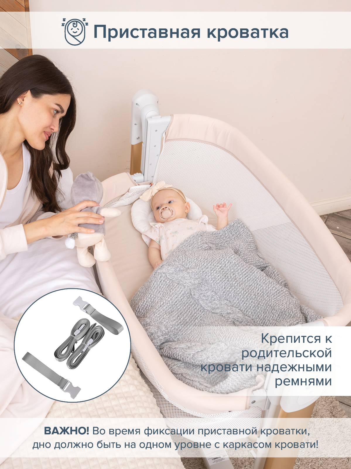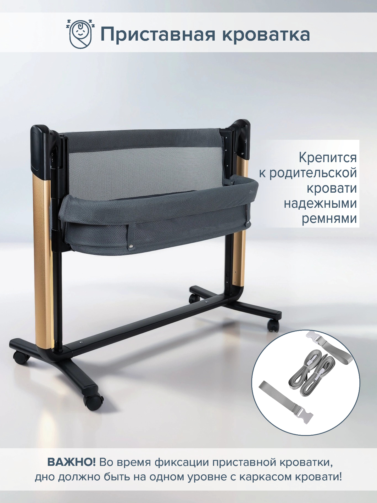 - Ремни для крепления к родительской кровати (в комплекте).