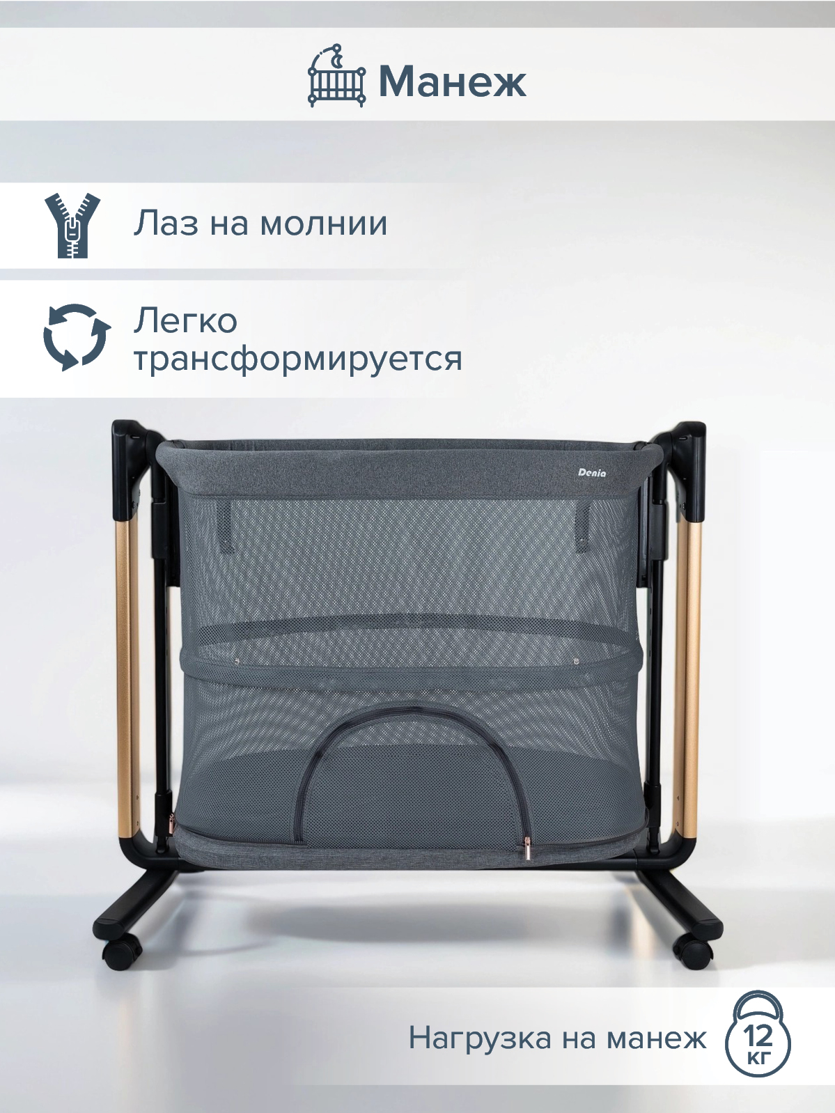 - Легко трансформируется в манеж с лазом (размер лаза: 47×24 см, высота от пола 20 см).