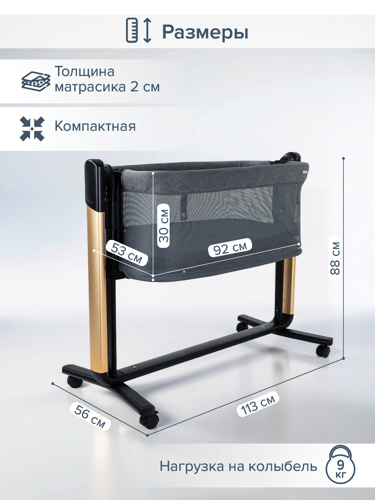 - Люлька: 92×54×38 см, матрас 4 см.