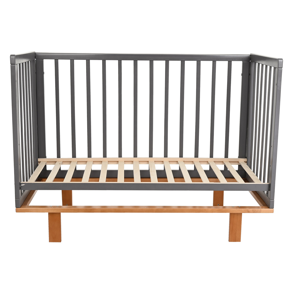 Стенки и дно кроватки – реечные, что создает естественную вентиляцию матраса и спального места и способствует отведению влаги. Благодаря такой конструкции кроватки малыш всегда в поле зрения мамы.