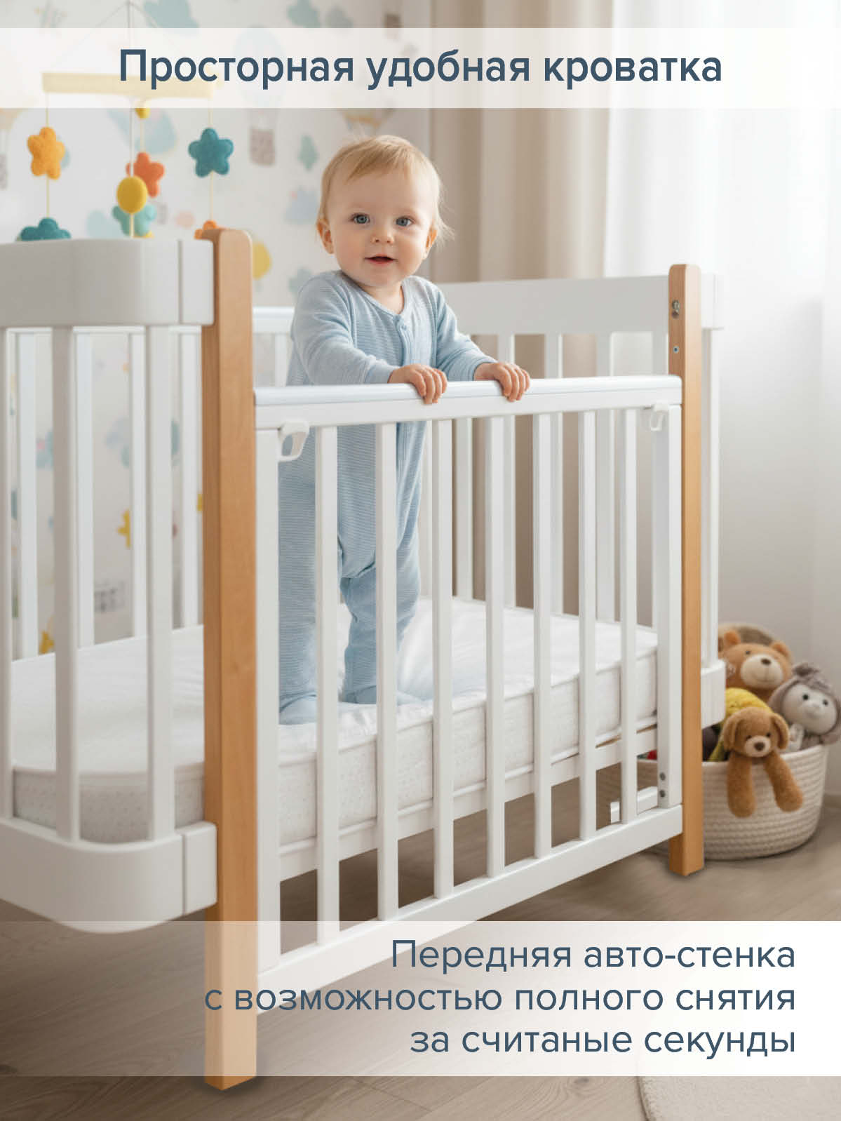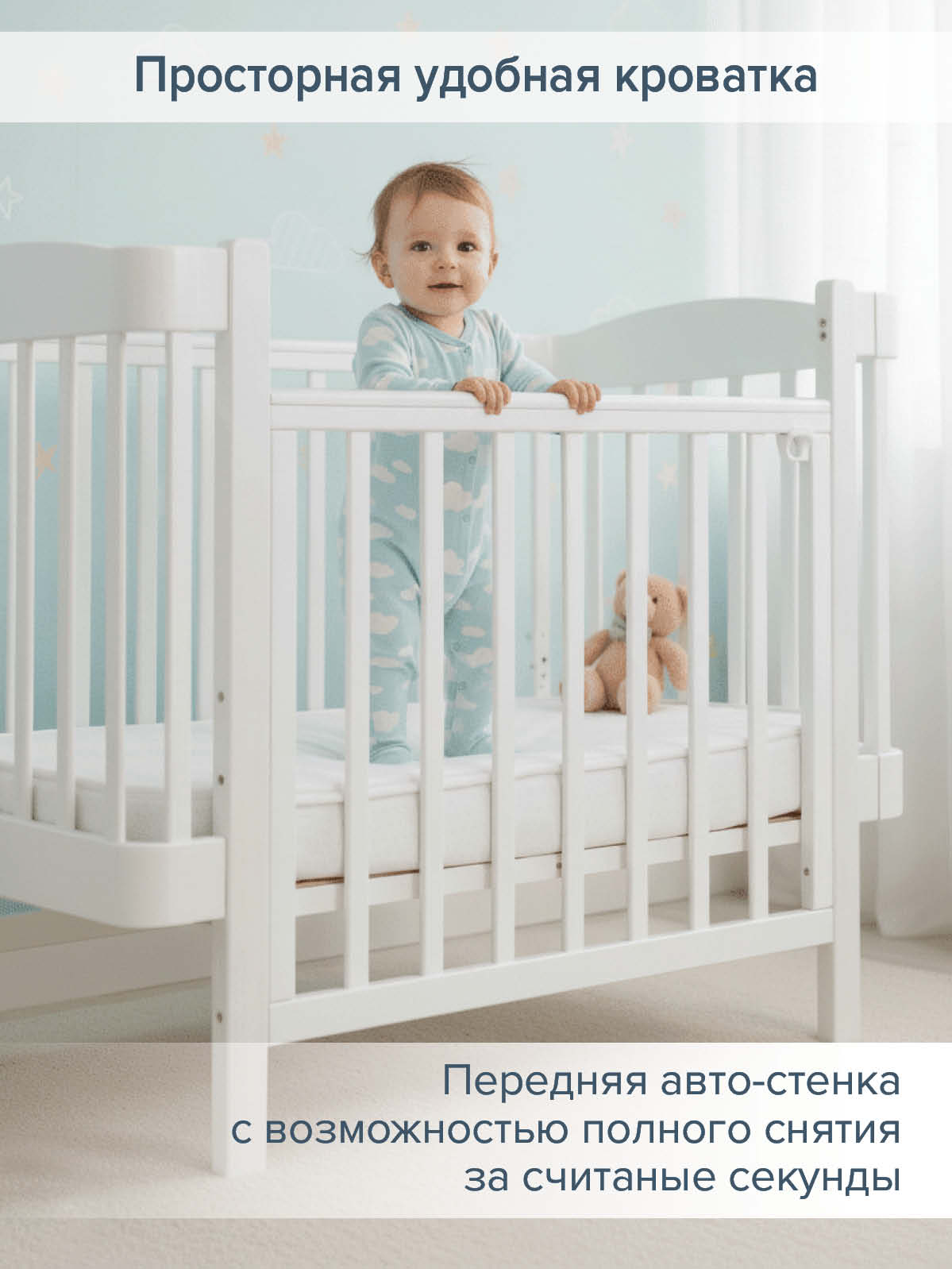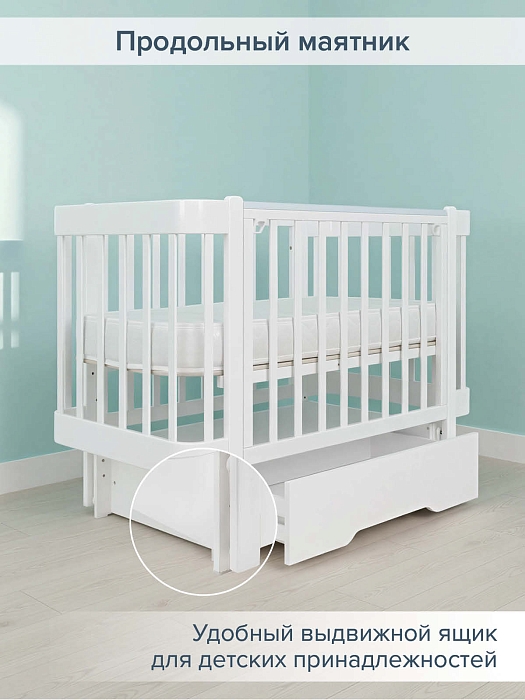 Маятник. Кроватку можно установить на продольный маятник. Специальная функция укачивания успокоит малыша перед сном и создаст бесшумные плавные движения, похожие на ручное качание.