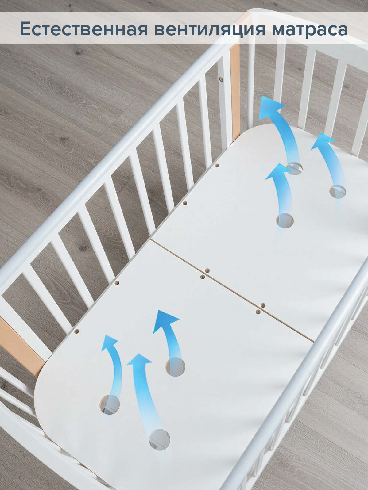 Дно кроватки с отверстиями, которые обеспечивают естественную вентиляцию матраса.