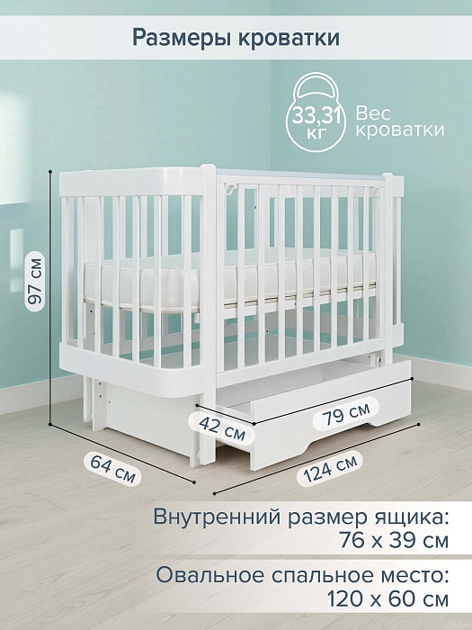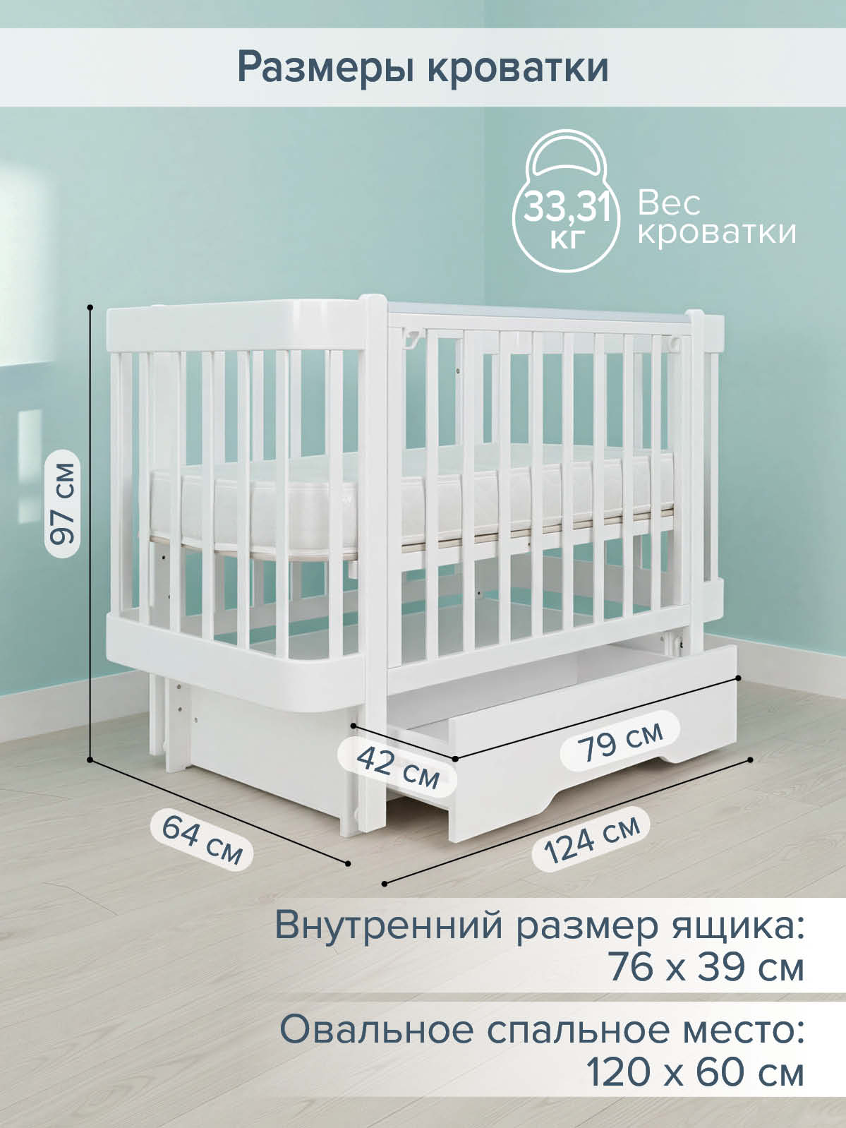 Детская кроватка из массива березы, для детей от 0 до 3х лет. Размеры 120х60 см. (Овальная). Она идеально впишется в любой интерьер.