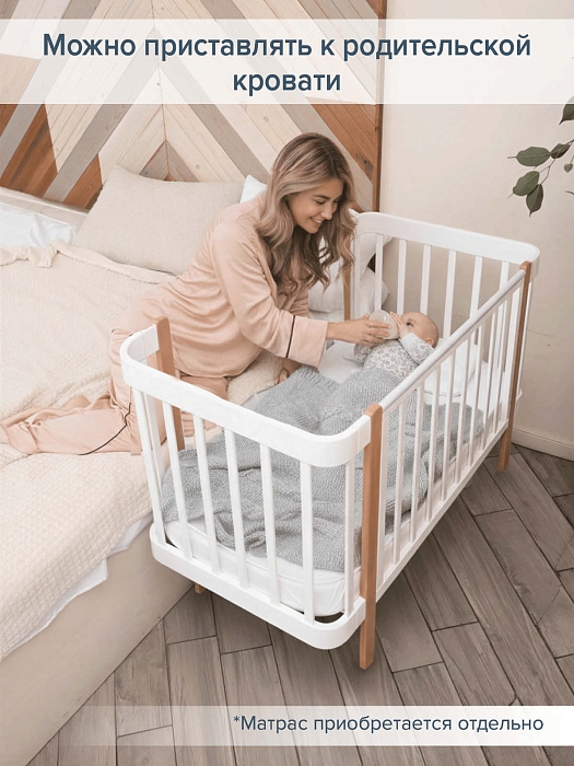 Благодаря съемной автостенке, можно приставлять к родительской кровати.