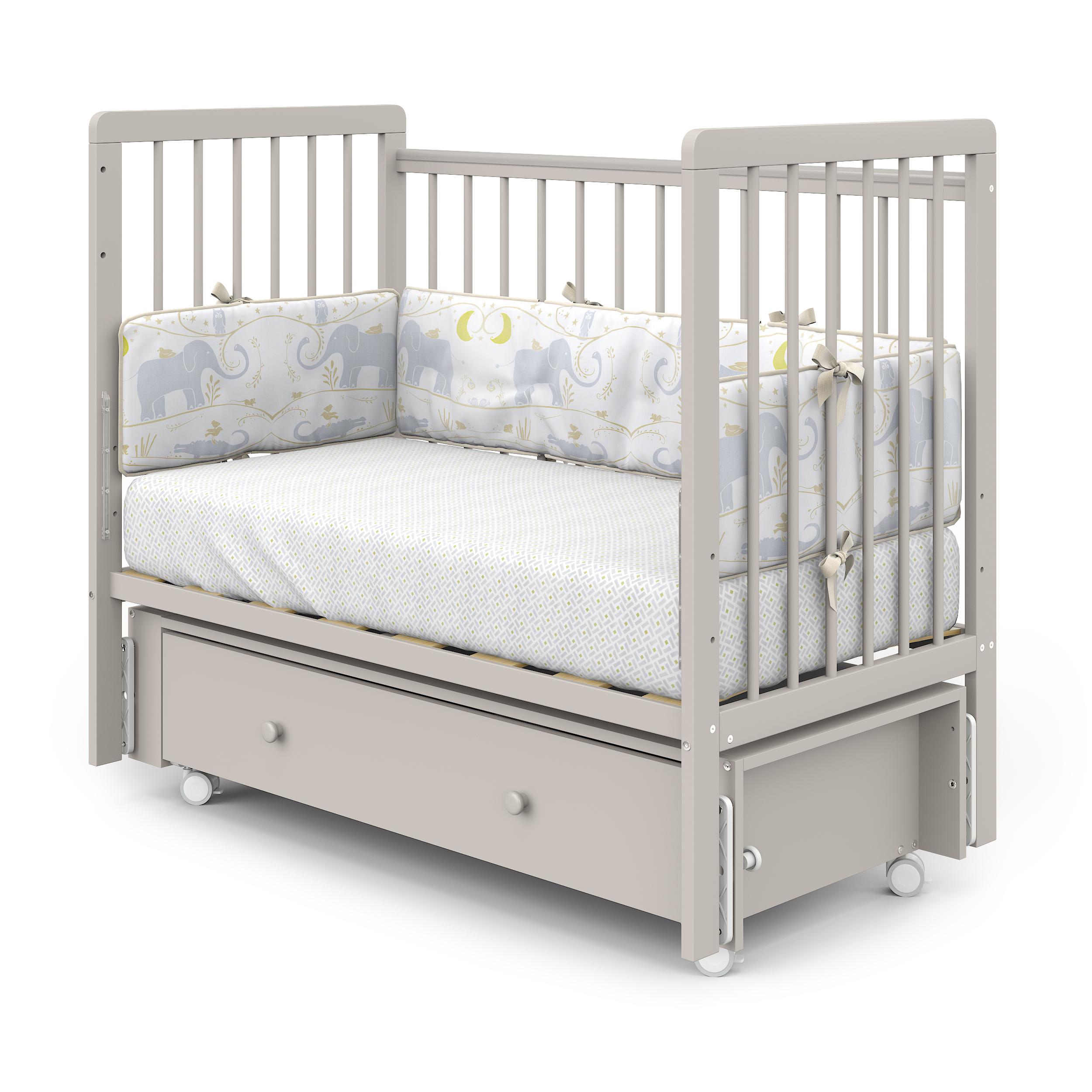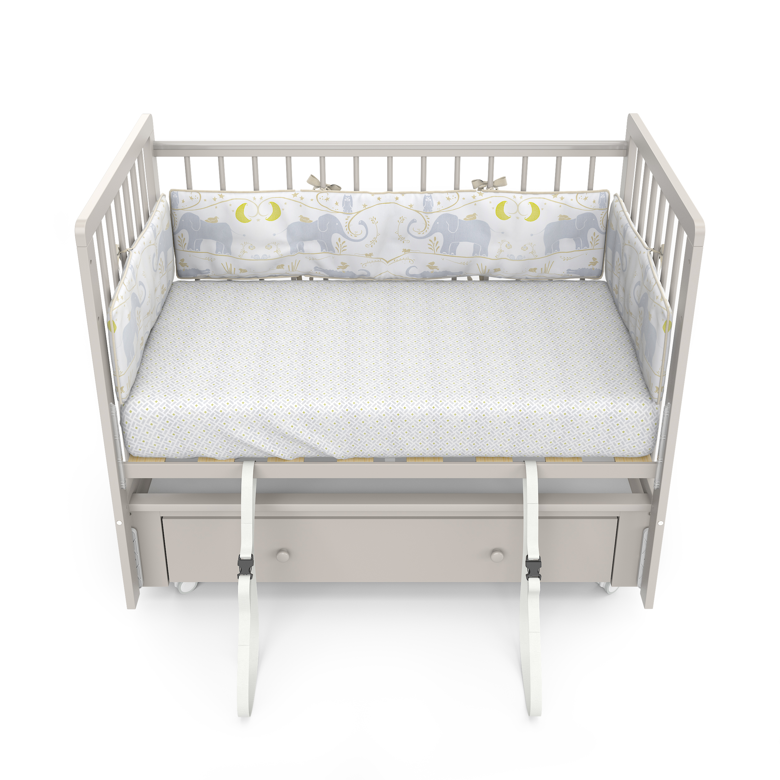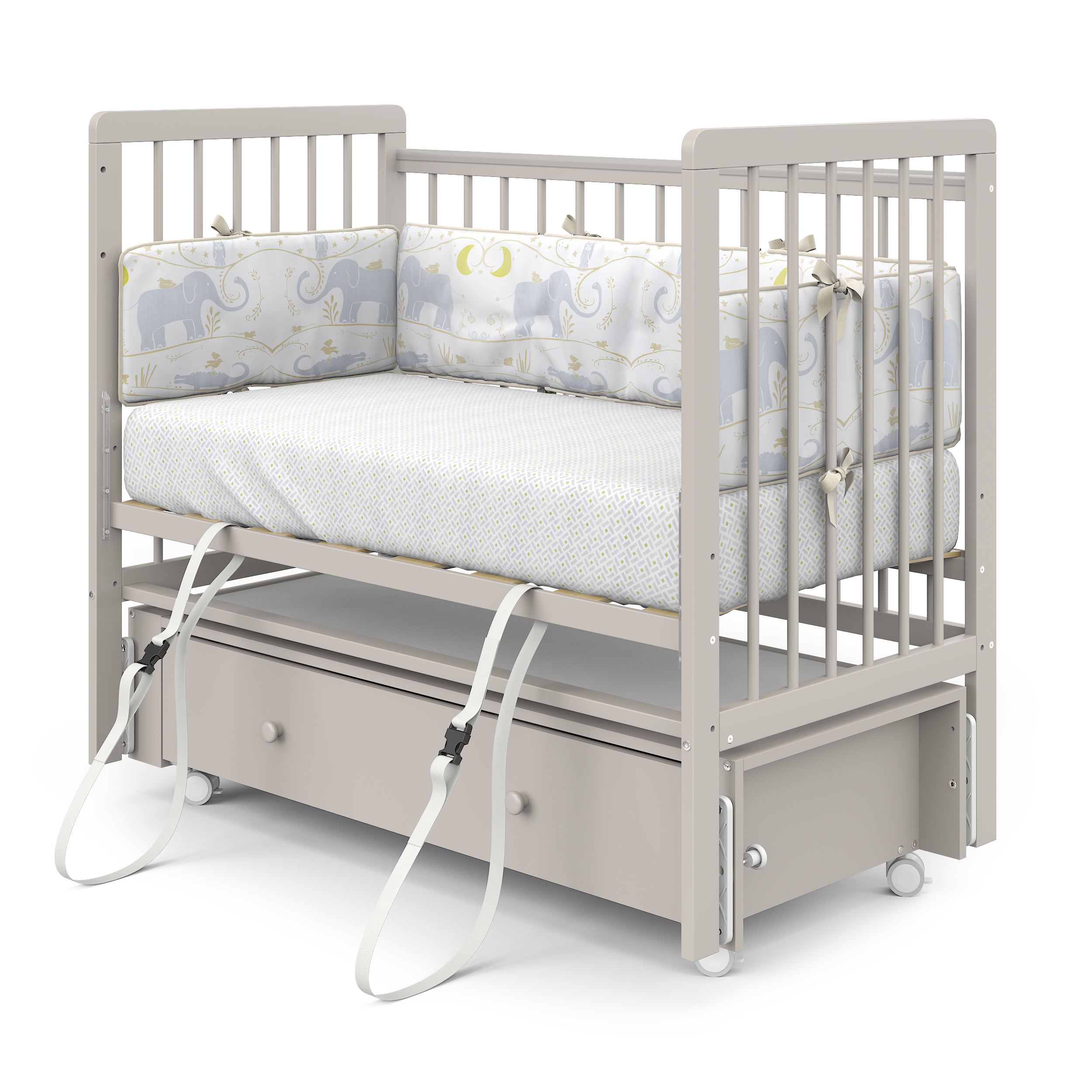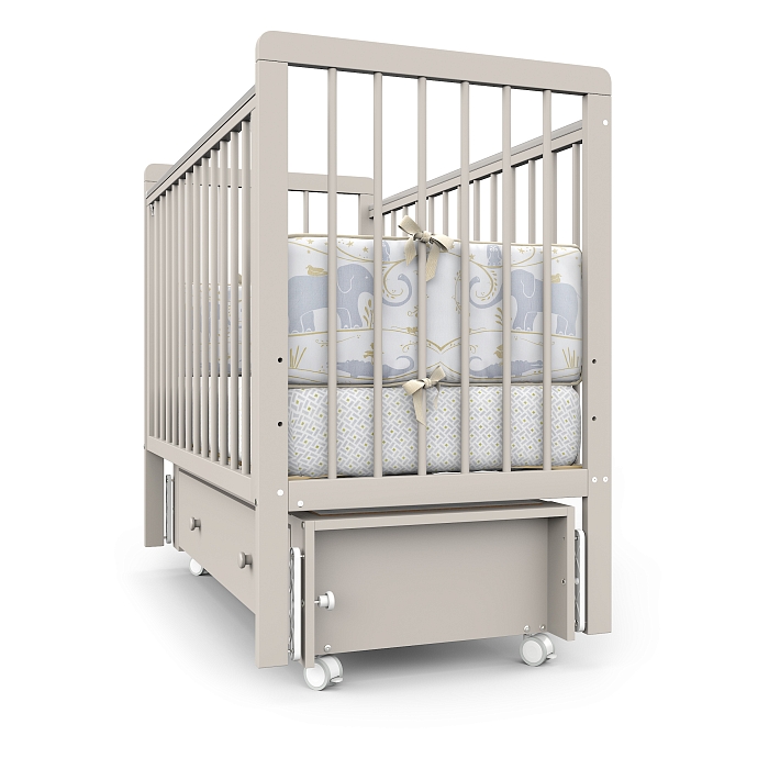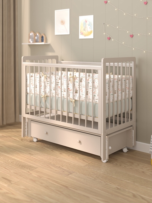 Бортики кровати имеют накладки (антигрызунки), которые будут актуальны при прорезывании зубов и не травмировать десна.