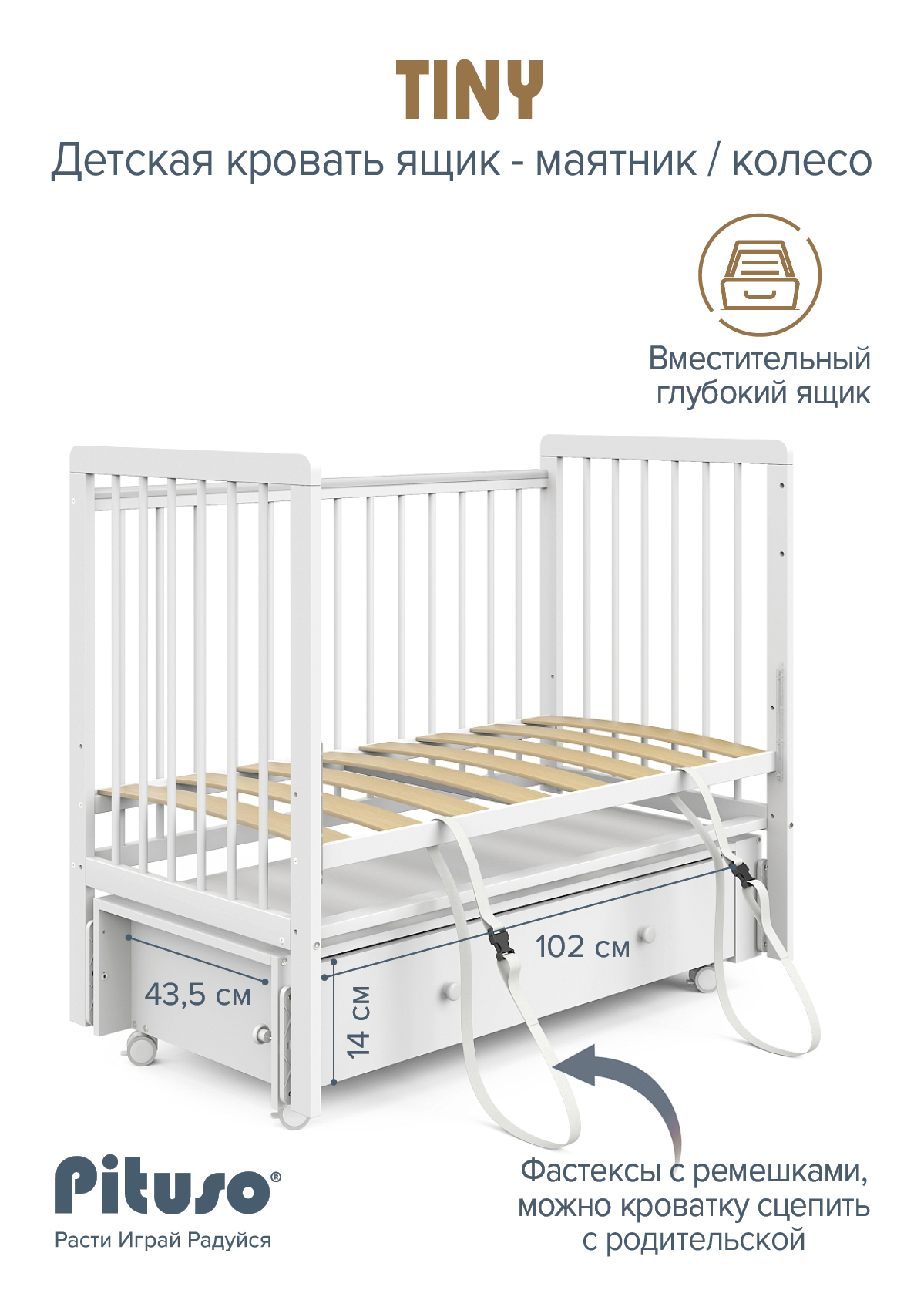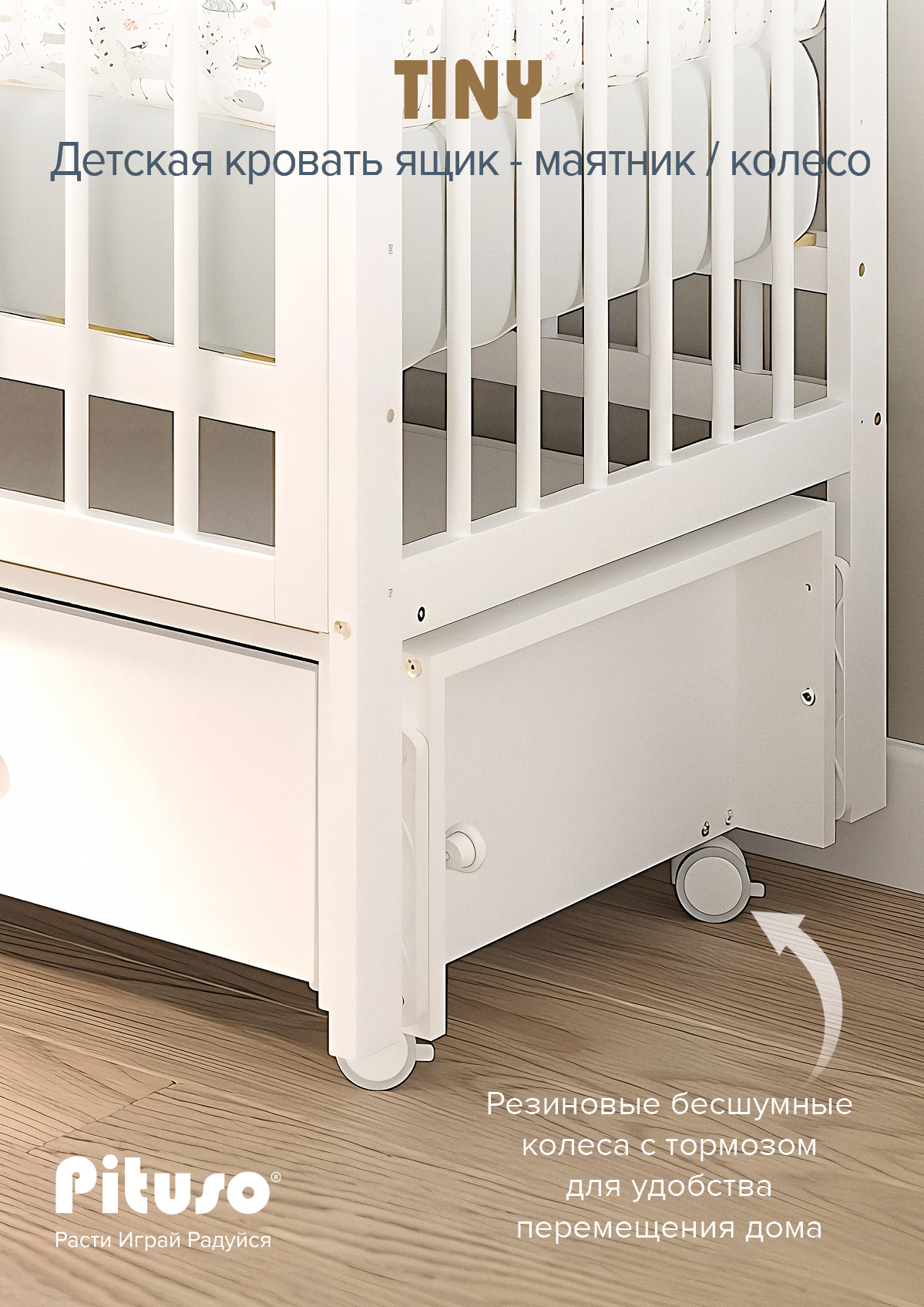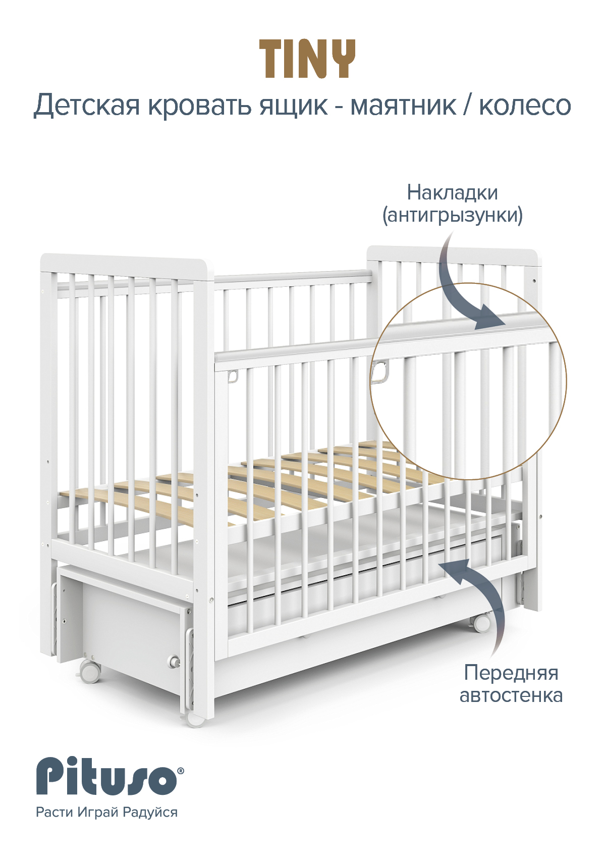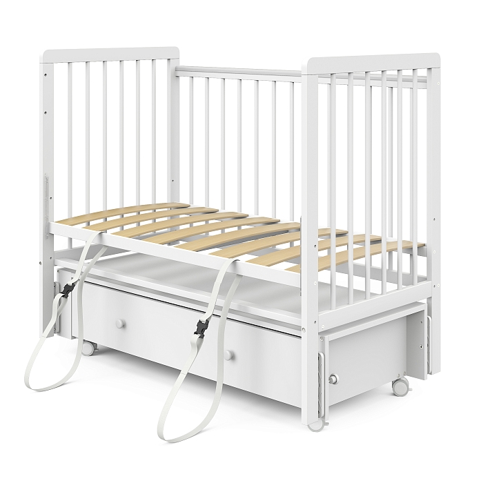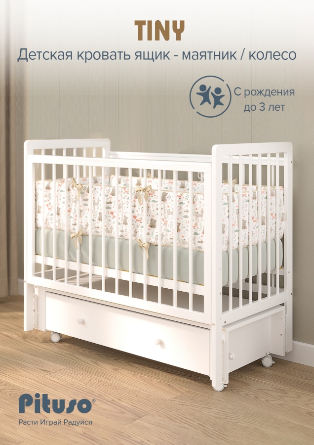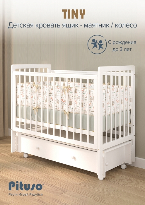 Кровать детская Pituso Tiny ящик-маятник/колесо Белая аляска