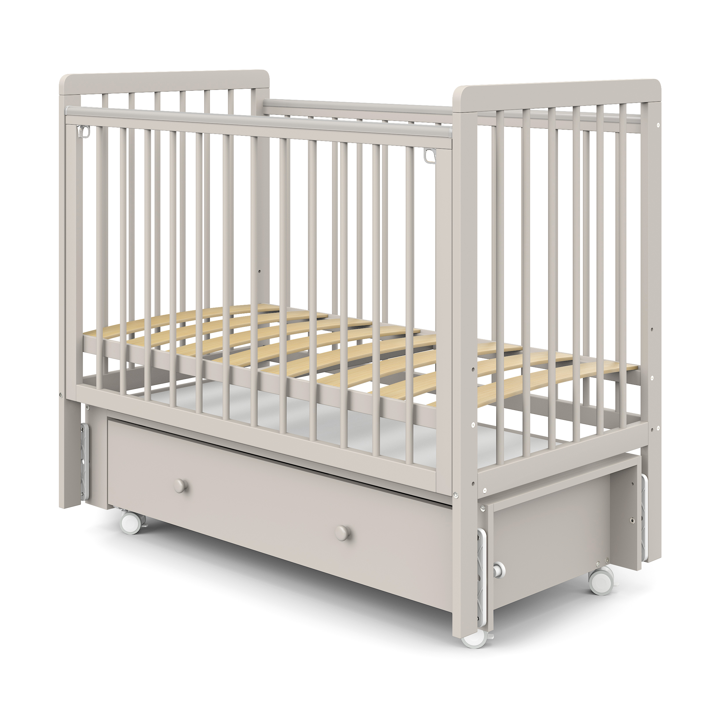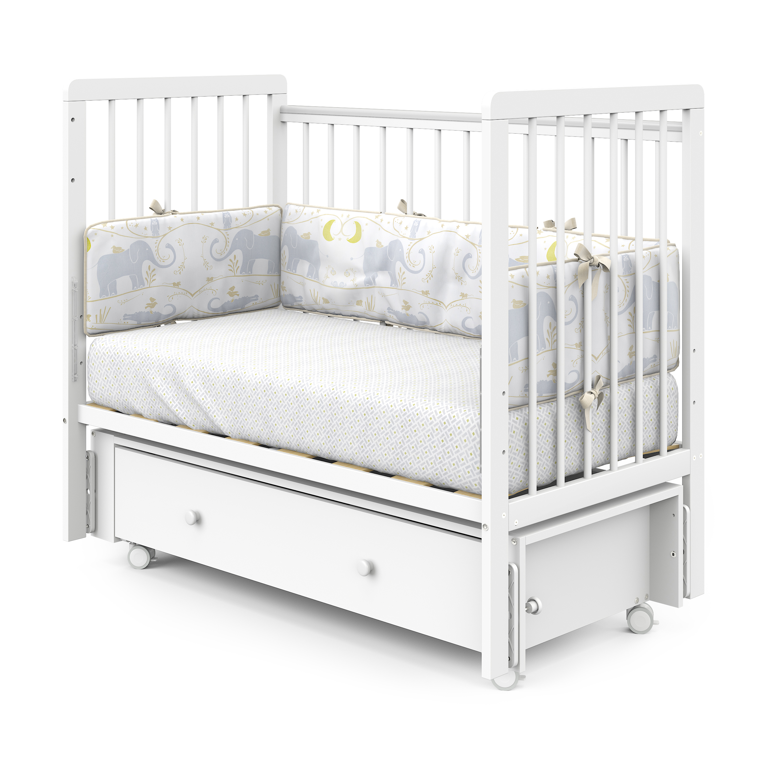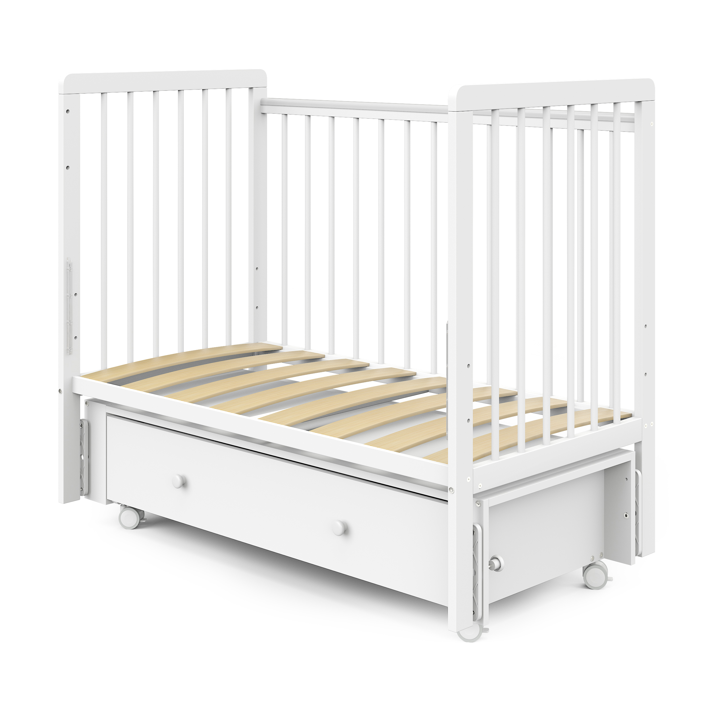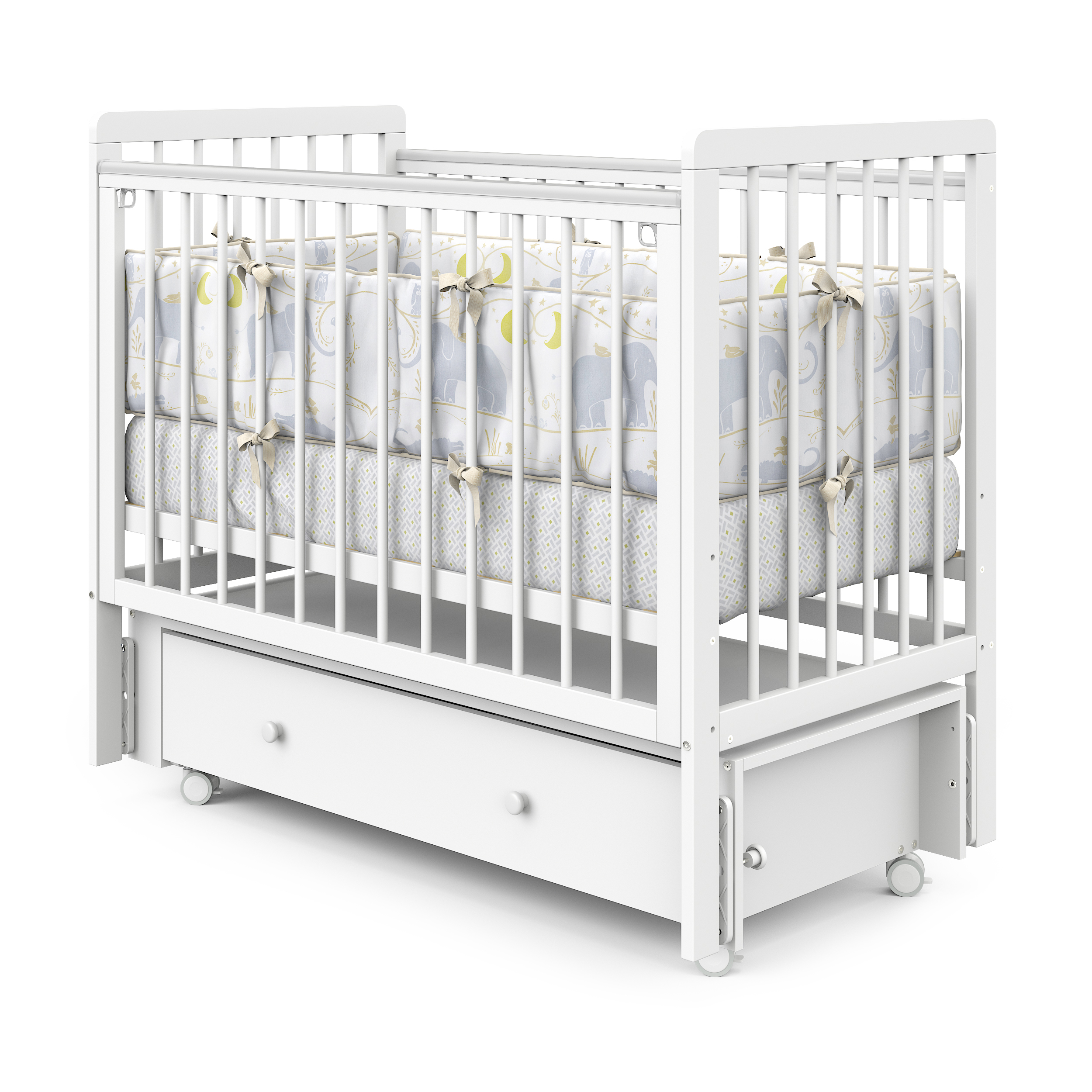 Кровать детская Pituso Tiny ящик-маятник/колесо Белая аляска