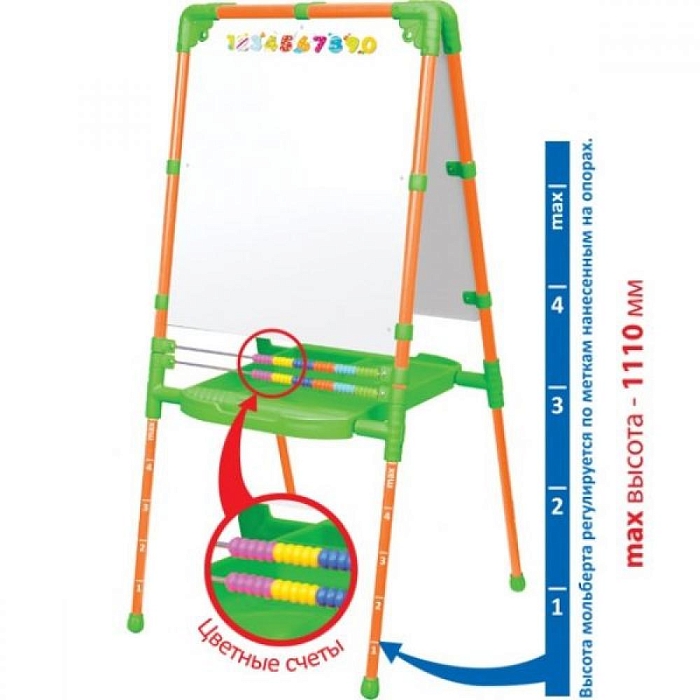 Регулировка высоты мольберта: от 73,5 до 107,5 см.