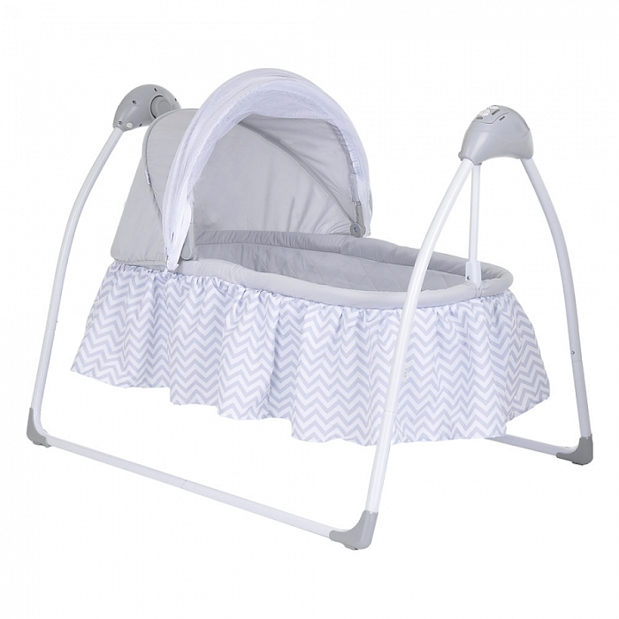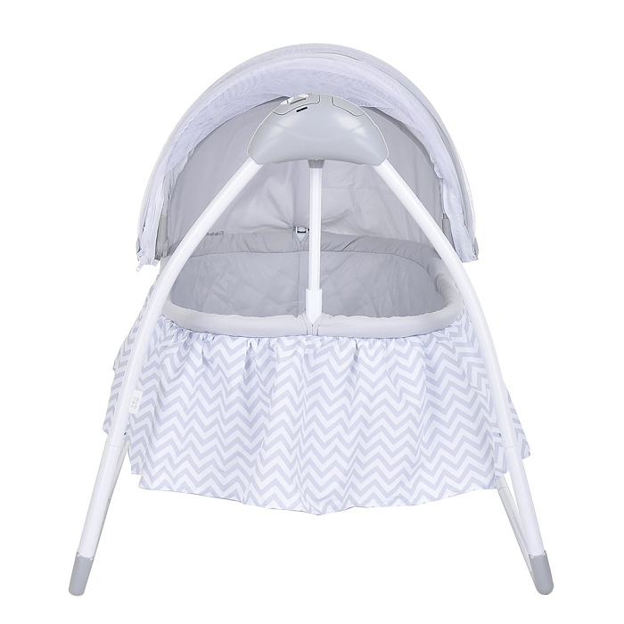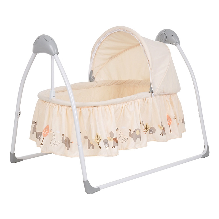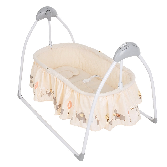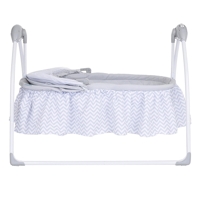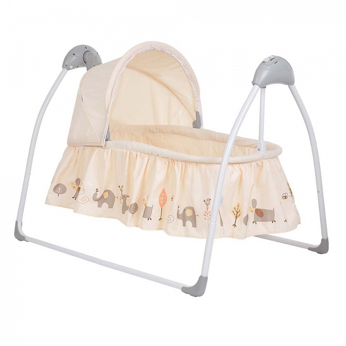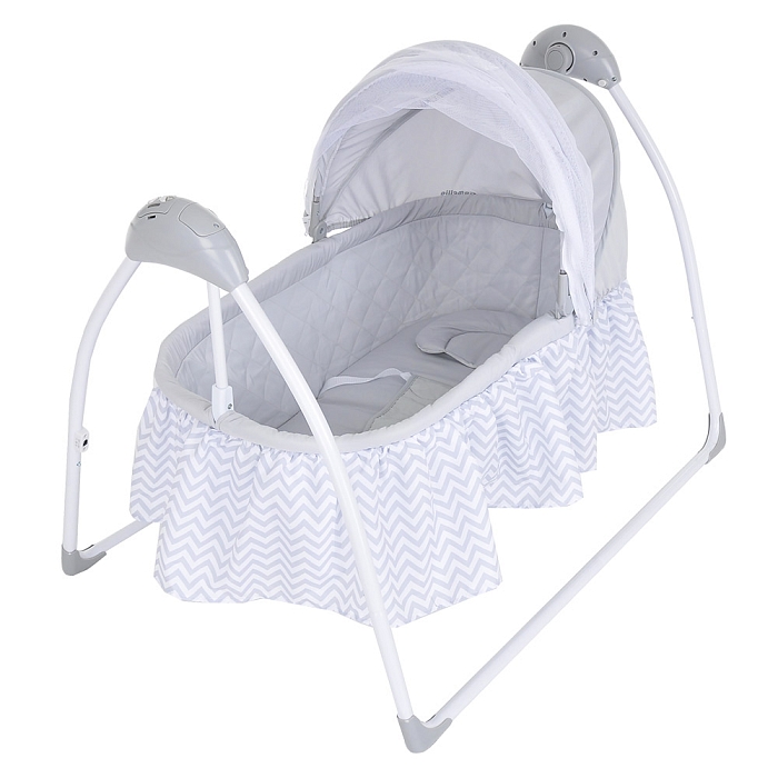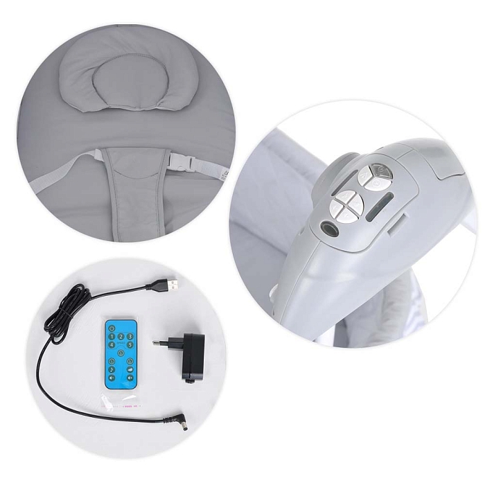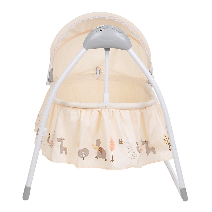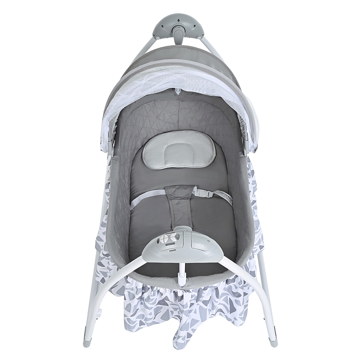 Мягкая, глубокая люлька предоставит ребенку комфорт, а двухточечный ремень - безопасность. Колыбелька оснащена тихим механизмом, который плавно и спокойно укачивает, а также предусмотрена успокаивающая музыка и звуки природы.