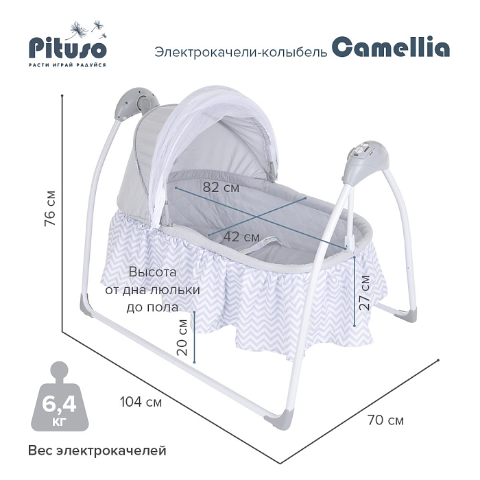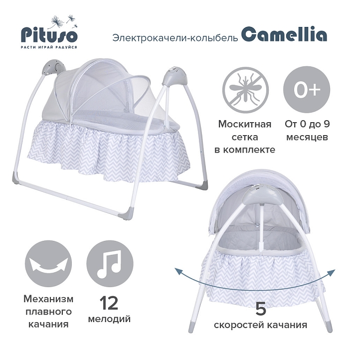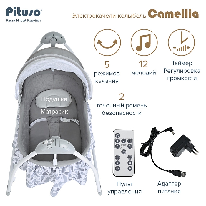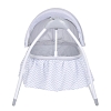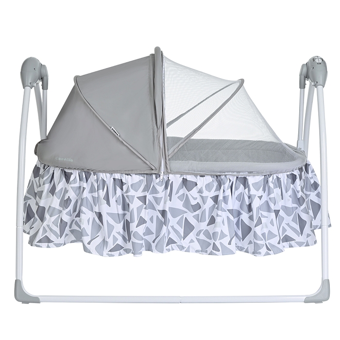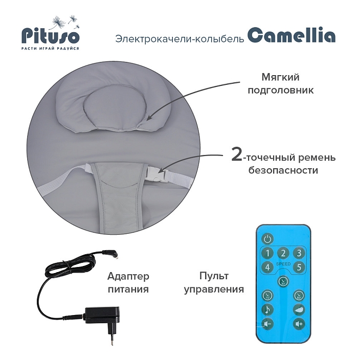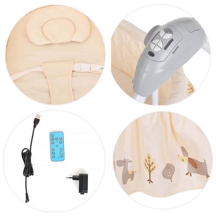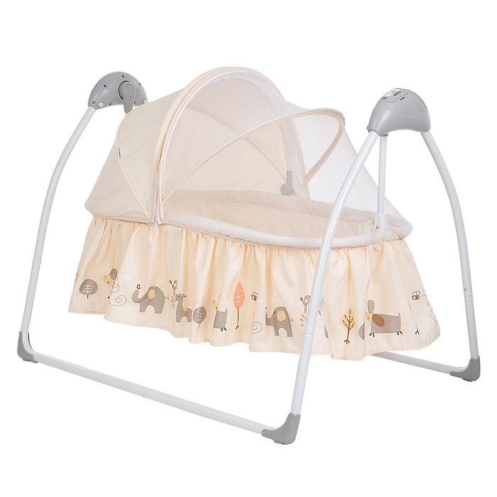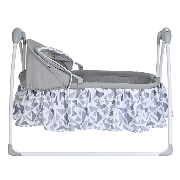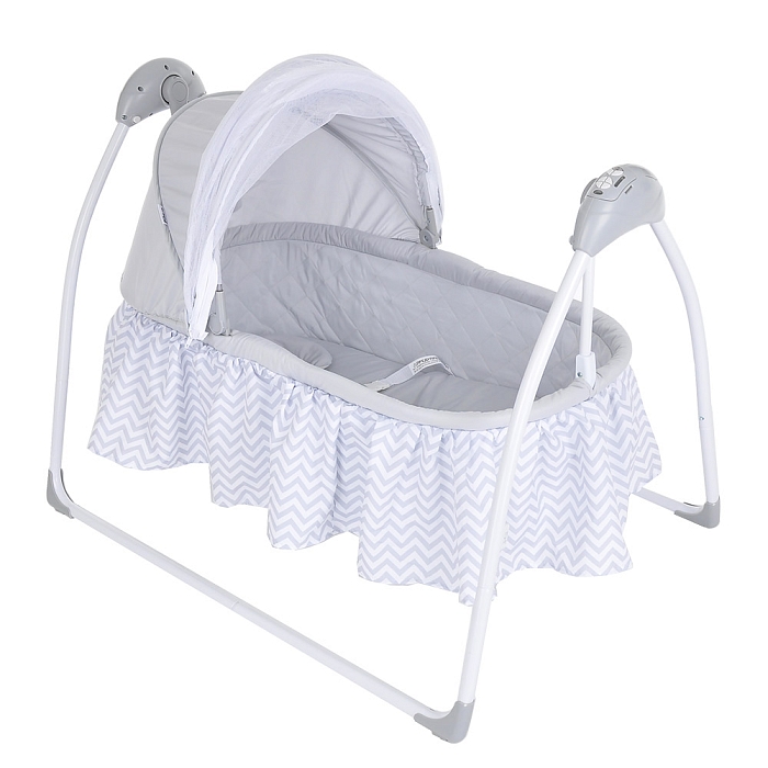 Мягкая, глубокая люлька предоставит ребенку комфорт, а двухточечный ремень - безопасность. Колыбелька оснащена тихим механизмом, который плавно и спокойно укачивает, а также предусмотрена успокаивающая музыка и звуки природы.
