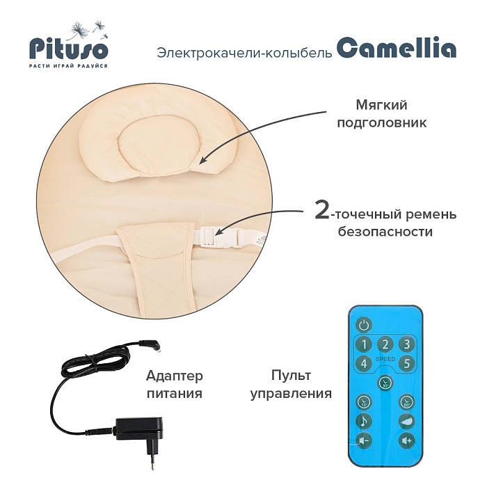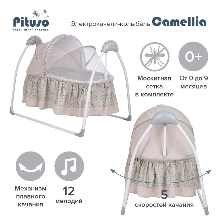 Электрокачели - колыбель Pituso Camellia Beige star/Звездочка, бежевый