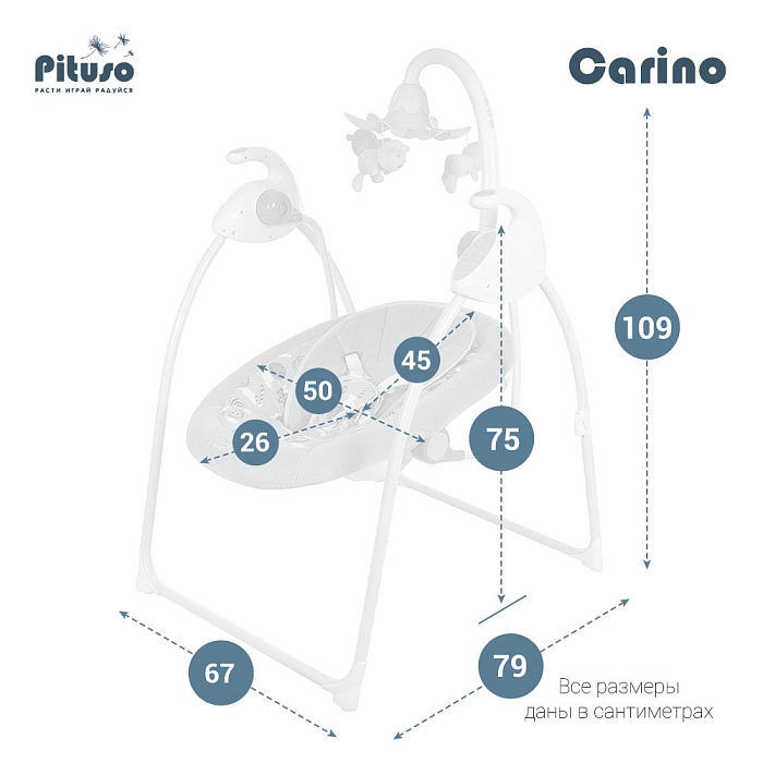 Электронные качели Pituso Carino предназначены для укачивания детей раннего возраста, подходят для малышей с рождения. Оснащены тихим механизмом, который плавно и спокойно укачивает, а также предусмотрена успокаивающая музыка.