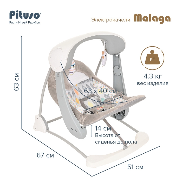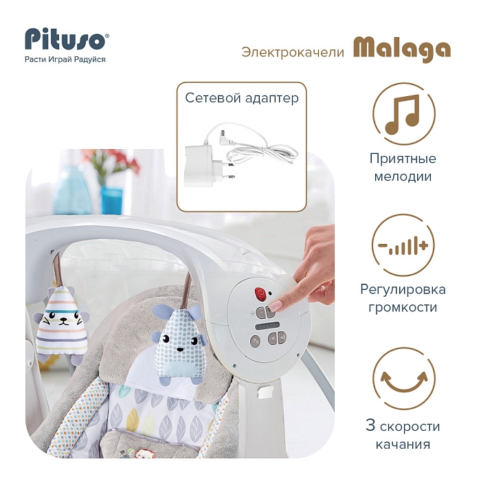 Электрокачели Pituso Malaga Grey/Серый