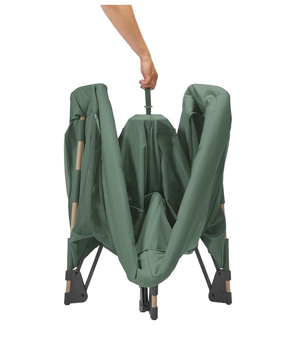 - Второй уровень с помощью простых в использовании небольших крючков превращает манеж в кроватку, что позволяет легче разместить новорожденного, не напрягая спину