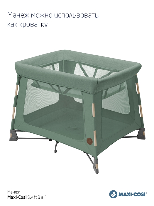 Maxi-Cosi Swift – универсальный стильный манеж 3 в 1, которую можно использовать как люльку для новорожденного, кроватку и прочный манеж для игр. Складывается за одну секунду.