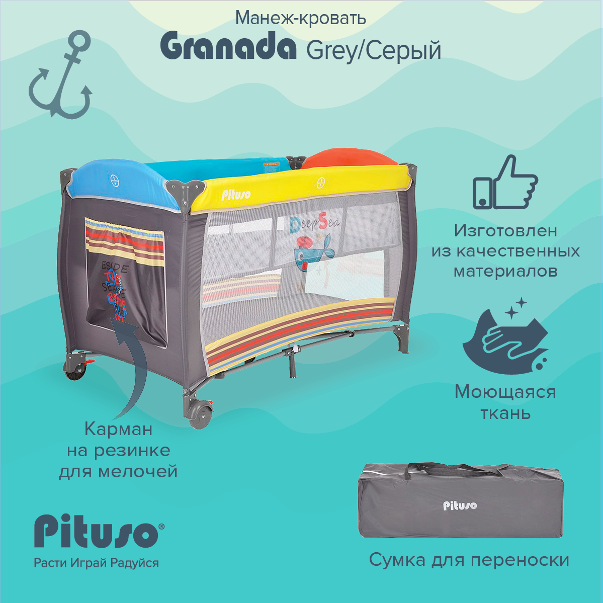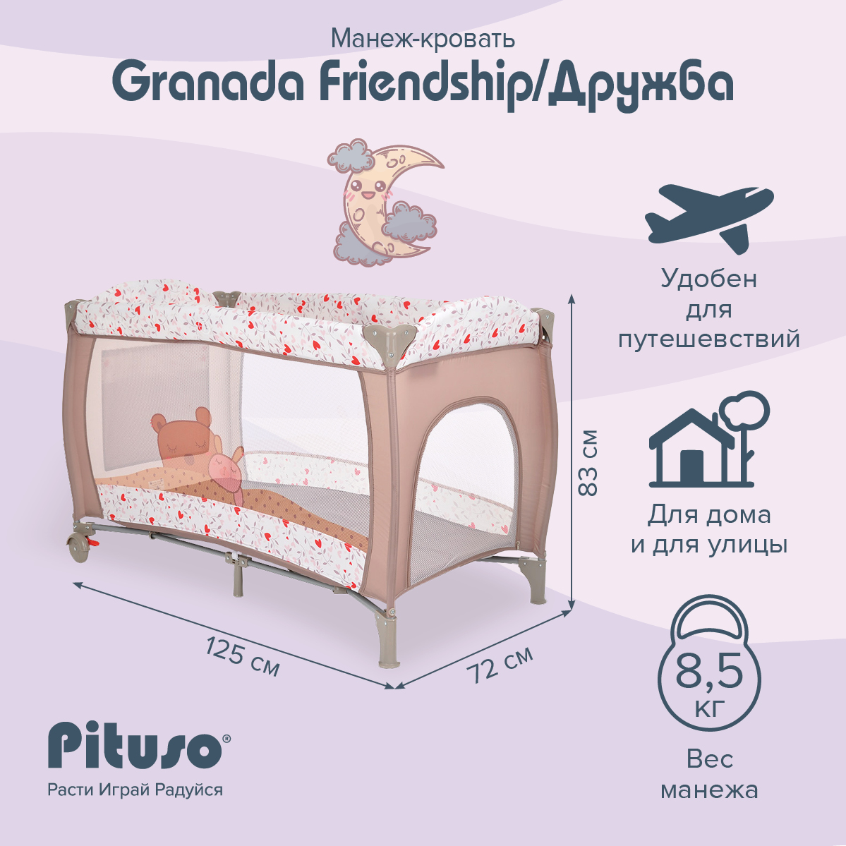 Pituso Granada можно поставить в комнате малыша, также его удобно брать с собой на дачу или для похода в гости.