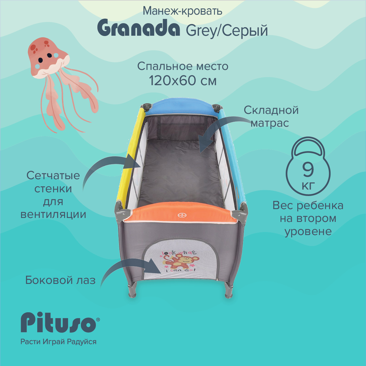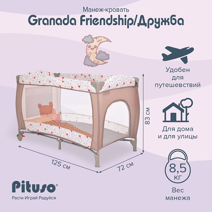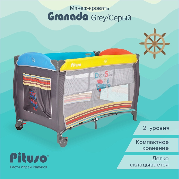 Двухуровневый манеж Pituso Granada создает безопасное, удобное и комфортное пространство, где ребенок может весело играть и отдыхать вместе с любимыми игрушками.