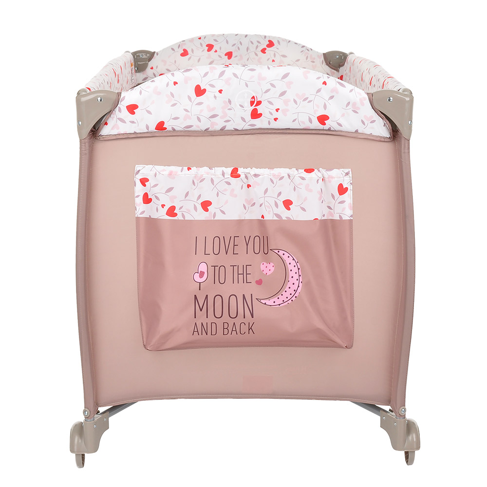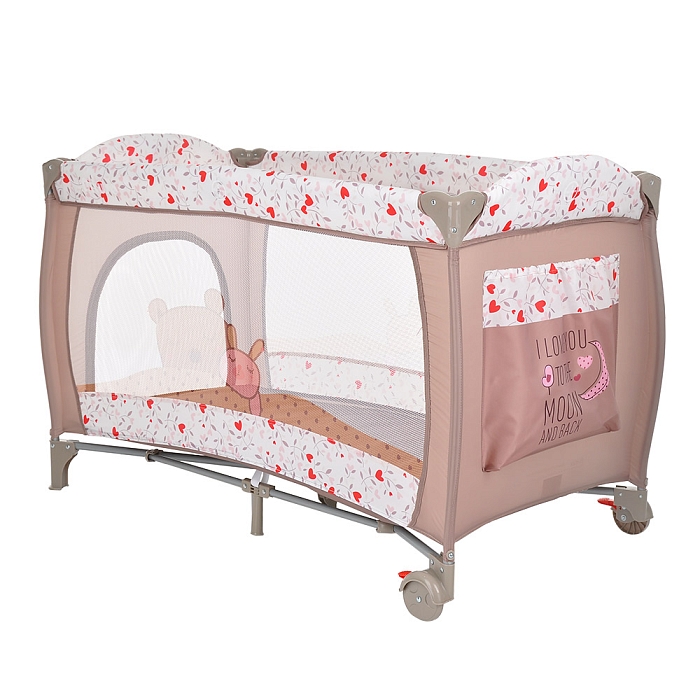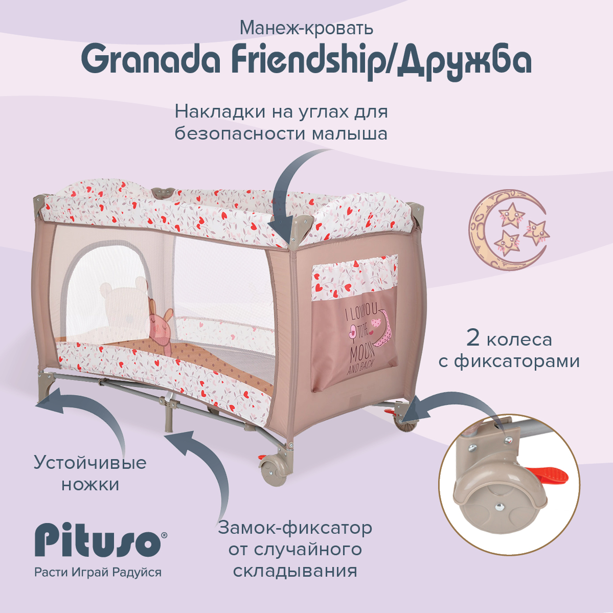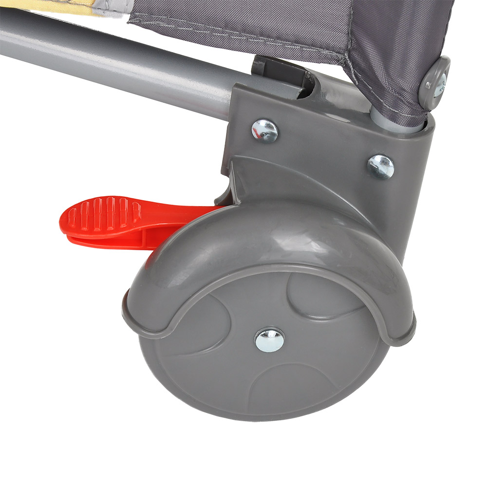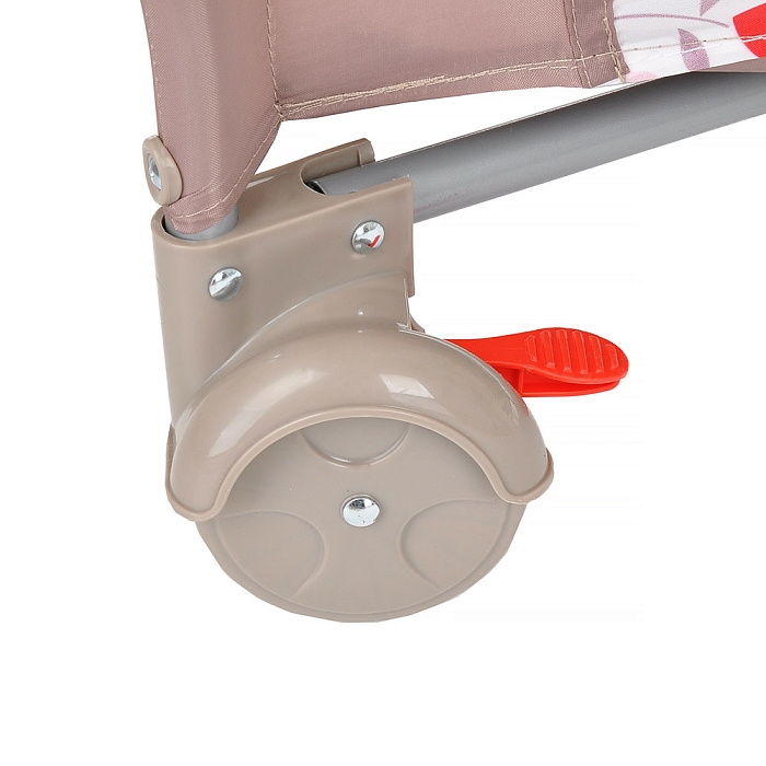 • 2 колеса с фиксаторами делают удобным перемещение манежа-кроватки по дому