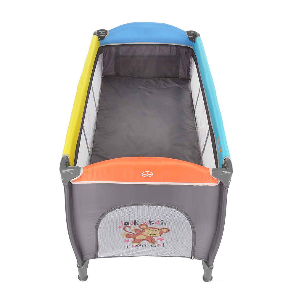 Легкая система складывания по принципу зонтика, позволяет очень быстро сложить и разложить манеж.