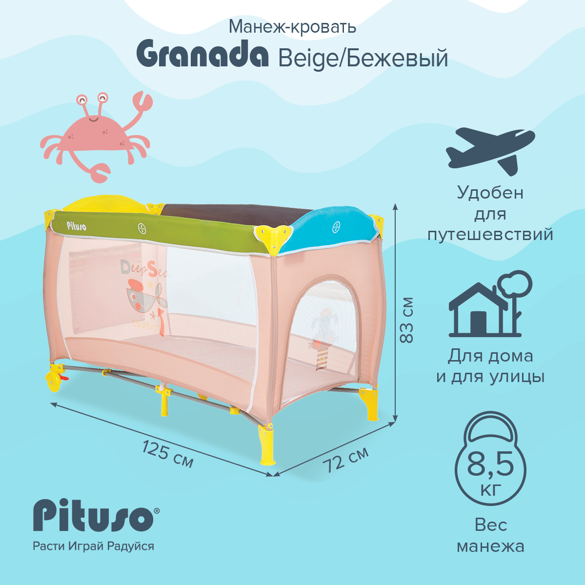 Манеж-кровать Pituso Granada Beige/Бежевый
