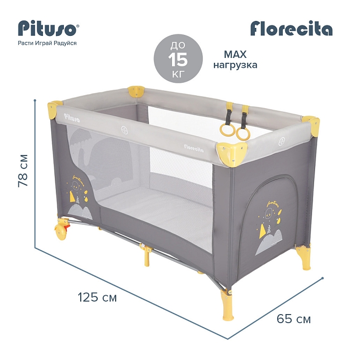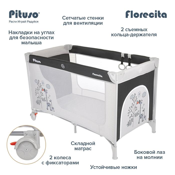 Манеж Pituso Florecita создает безопасное, удобное и комфортное пространство, где ребенок может весело играть и отдыхать вместе с любимыми игрушками.
