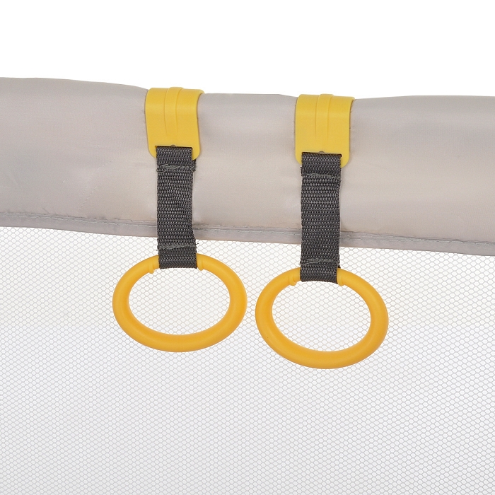 Специальные двойные замки безопасности предохраняют манеж от случайного складывания. Легкая система складывания по принципу зонтика, позволяет очень быстро сложить и разложить манеж.