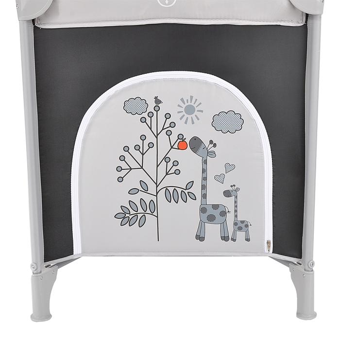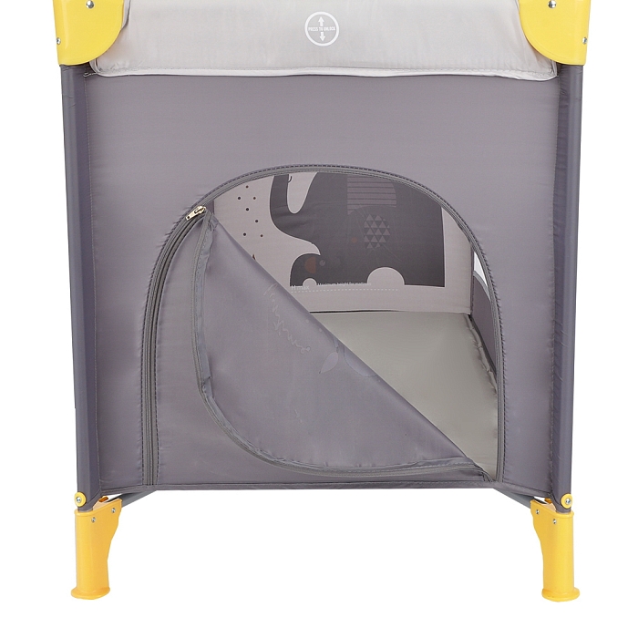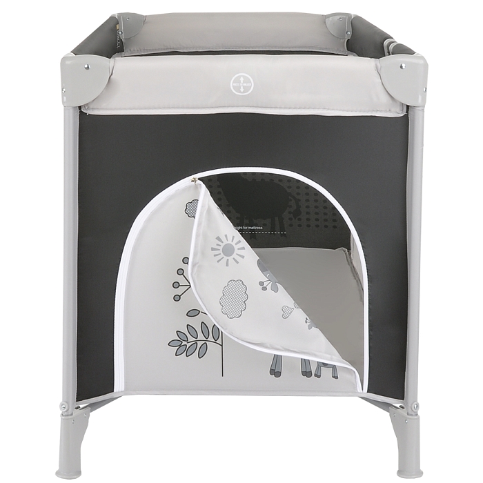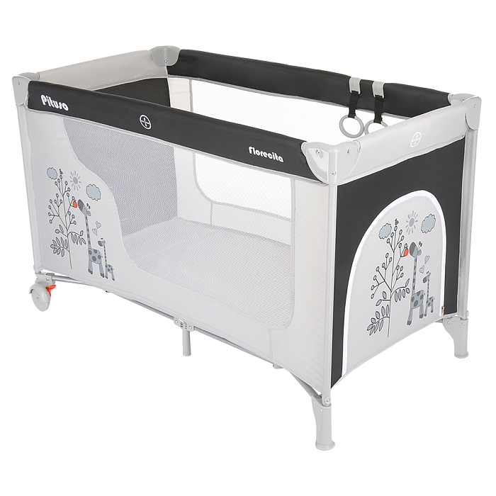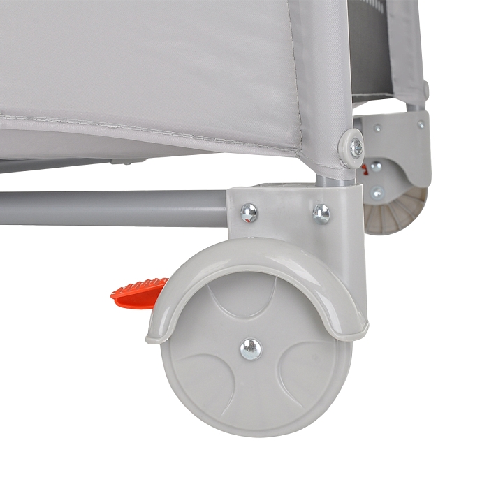 • 2 колеса с фиксаторами делают удобным перемещение манежа-кроватки по дому
